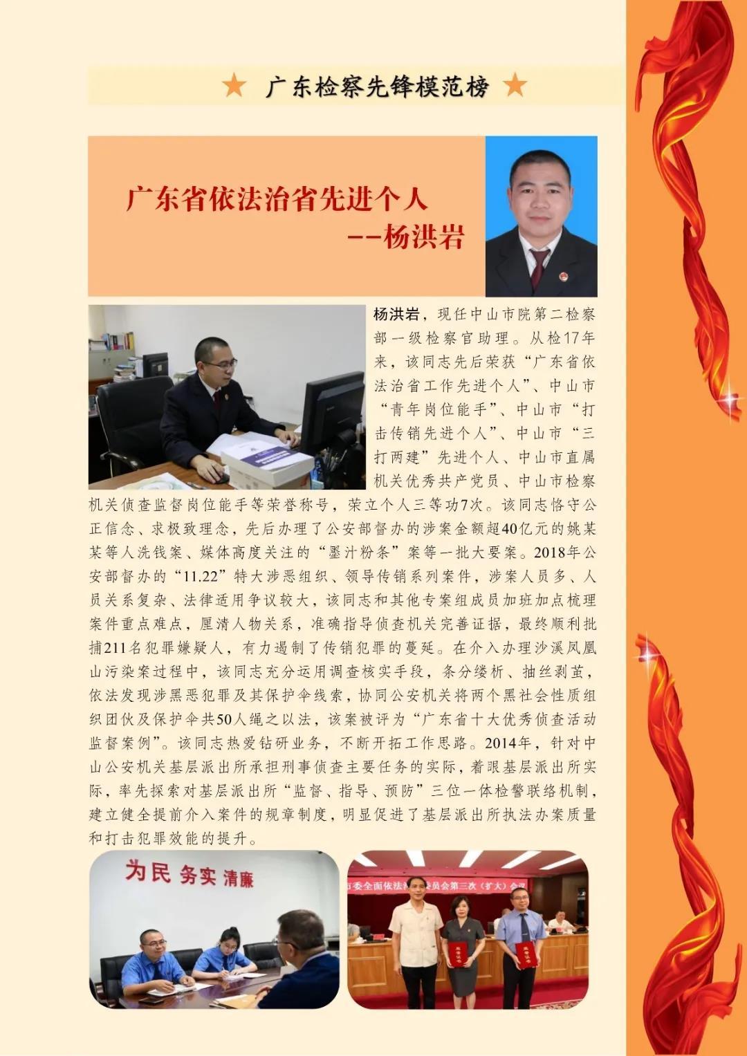 近日,中山市人民检察院第二检察部一级检察官助理杨洪岩登上《广东检察先锋模范榜》。