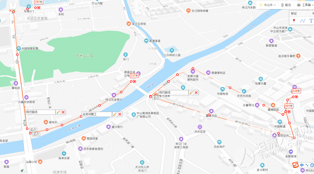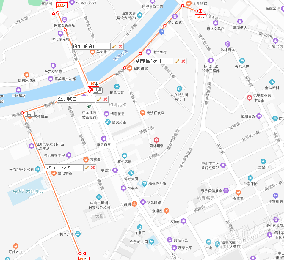 坦洲二桥至坦洲一桥全封闭,请广大车主绕行联兴路至德溪路、金斗大街至文康路。