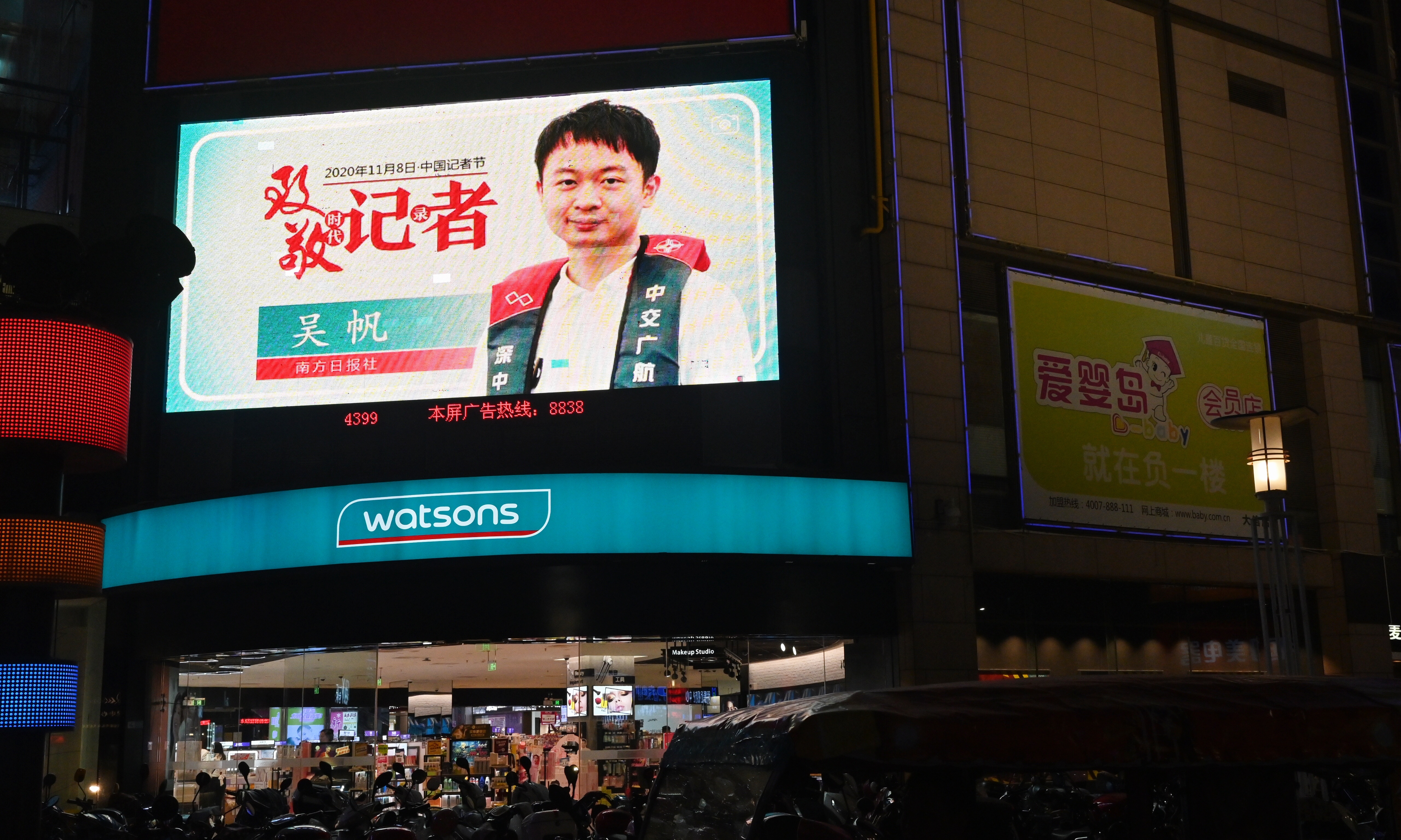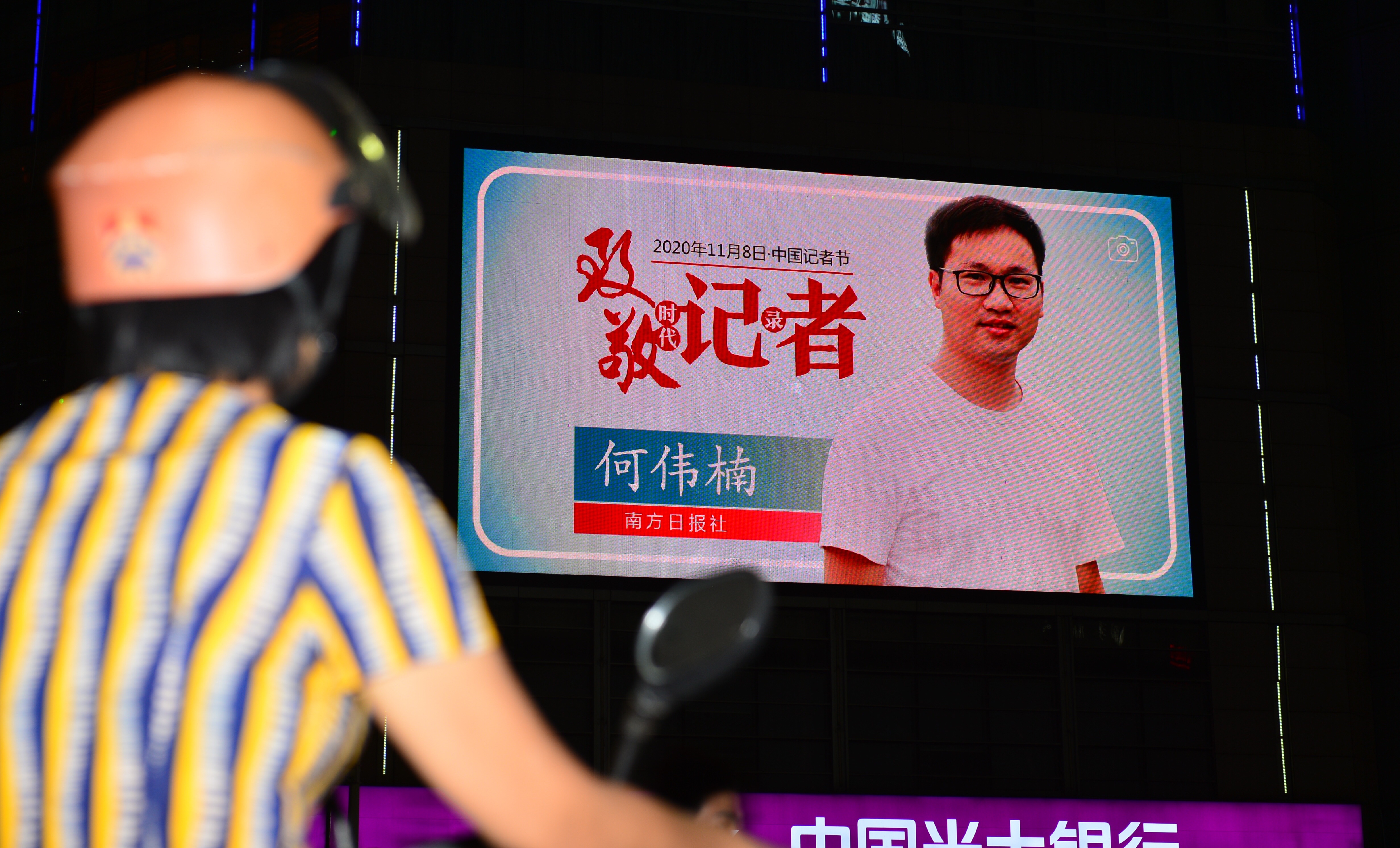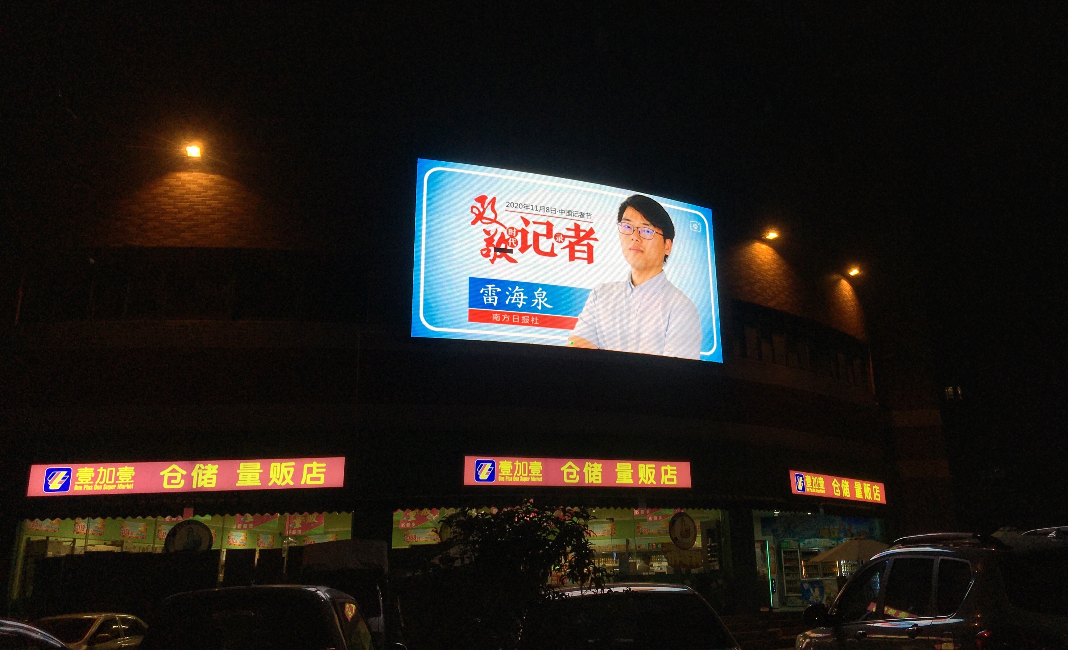 11月6日晚起连续三晚,全城首次为记者亮灯!来自6大媒体的24位优秀记者,他们的形象被制作成海报、H5微视频等“爆款产品”,在全市各大屏幕滚动播放。