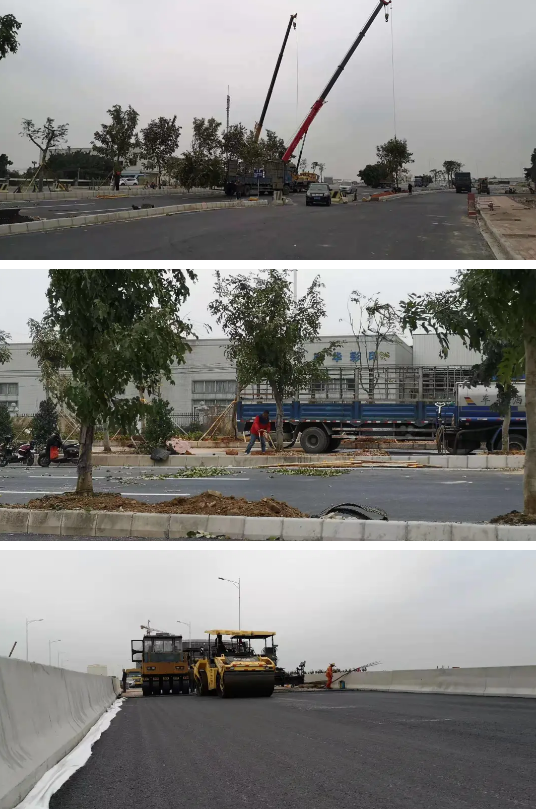 目前,黄圃快线全线主线已完成沥青路面18.8公里,道路两旁和中间的绿化树也正在抓紧施工,光大型机械就出动了4台。剩余上南互通7跨的桥梁也正在加紧施工。