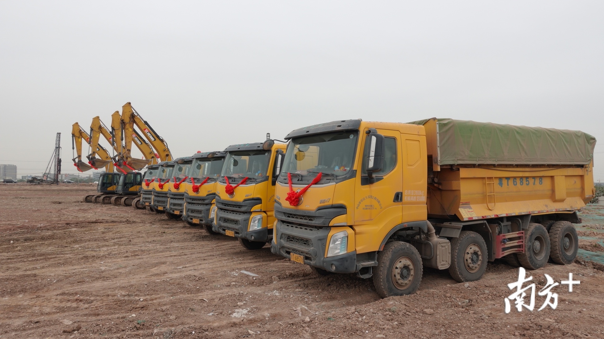 项目动工仪式现场的施工车辆在仪式后随即开展施工工作。