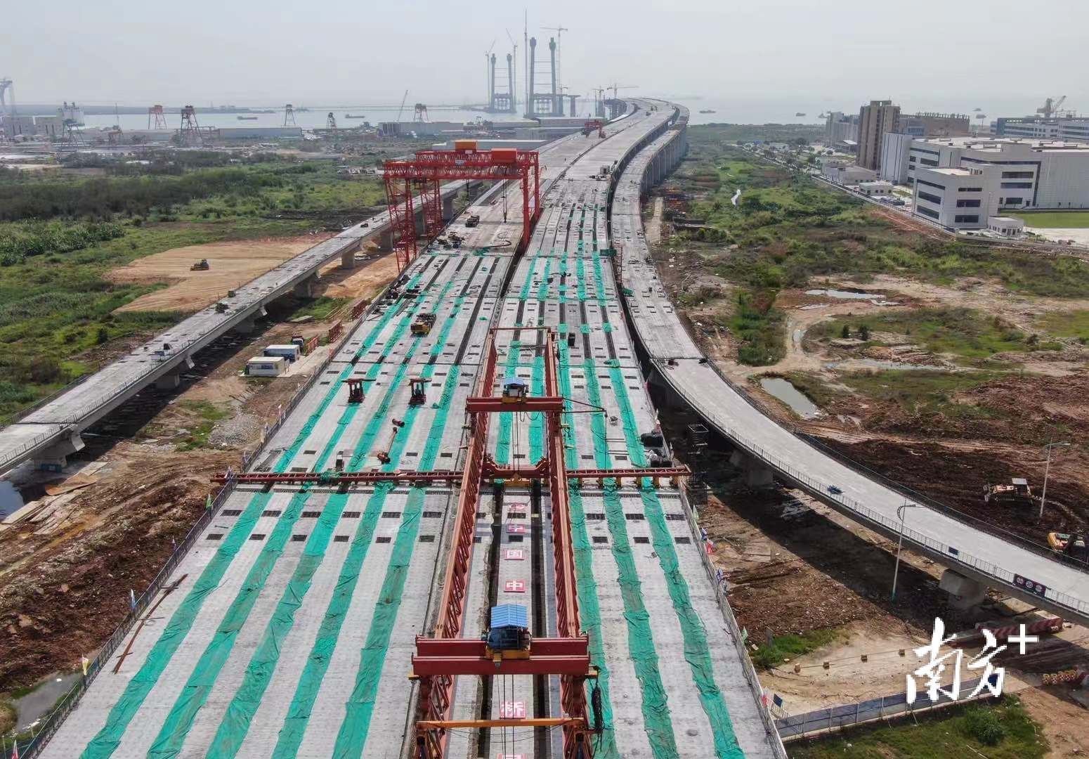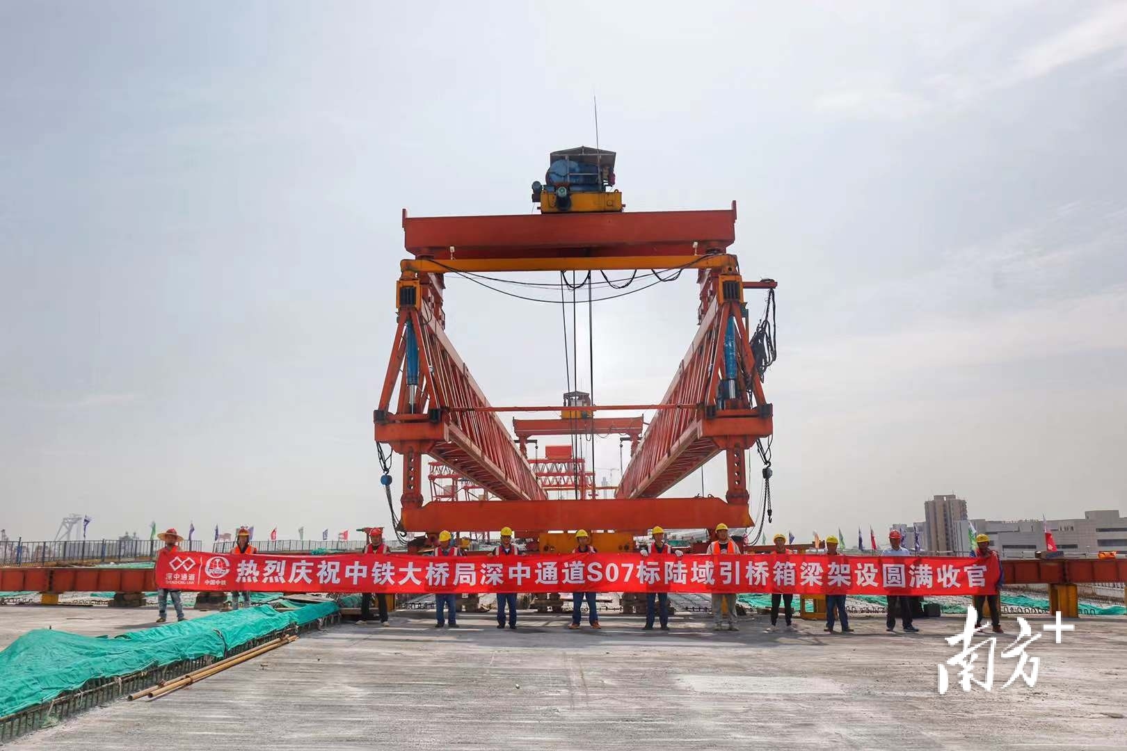 5月6日上午9点30分,深中通道陆域引桥最后一榀箱梁架设完毕。