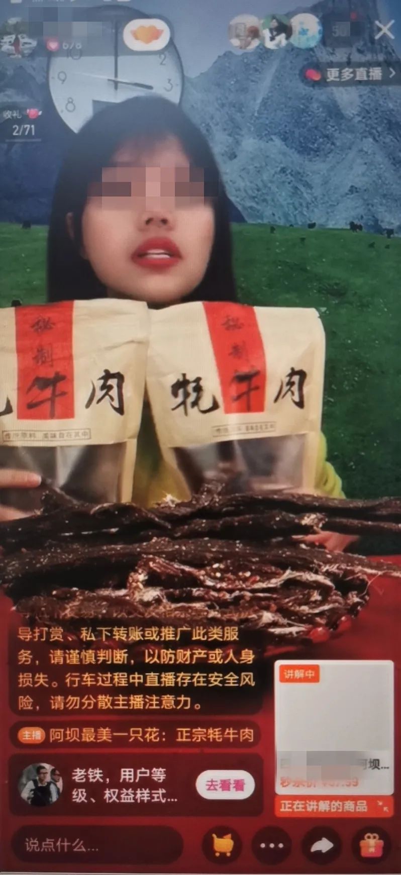 据嫌疑人交代,该团伙在直播带货时有专门话术,打着牦牛牛肉干的幌子,强调自产自销的牦牛肉干肉质好、营养高、价格低廉,卖的却是鸭肉干。一旦有买家对牛肉干产生质疑,该团伙会立即退货退款处理,而退回的牛肉干将重新包装后再次售出。