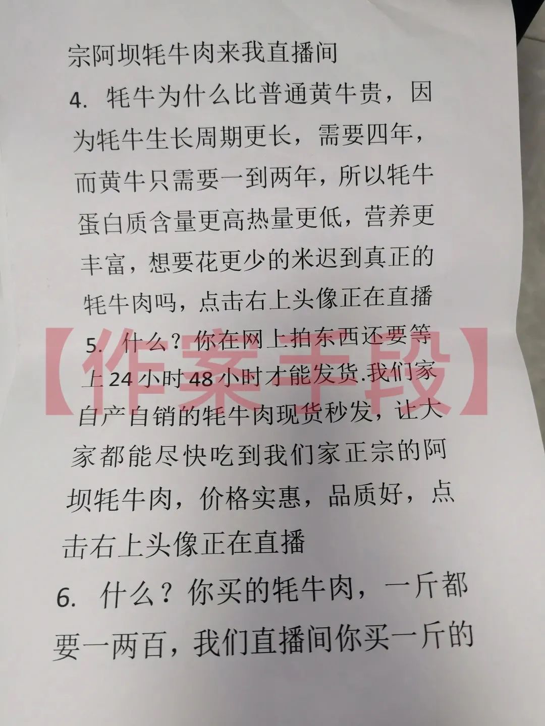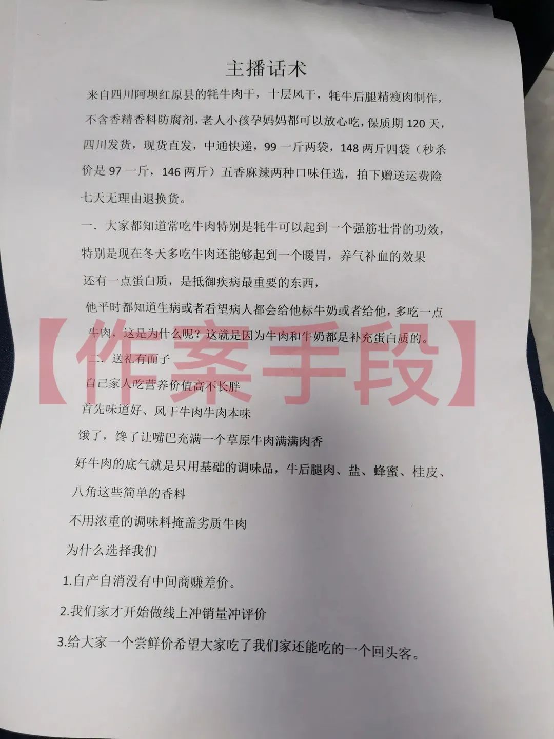 ▲用于直播卖货的文稿(点击放大图片查看)