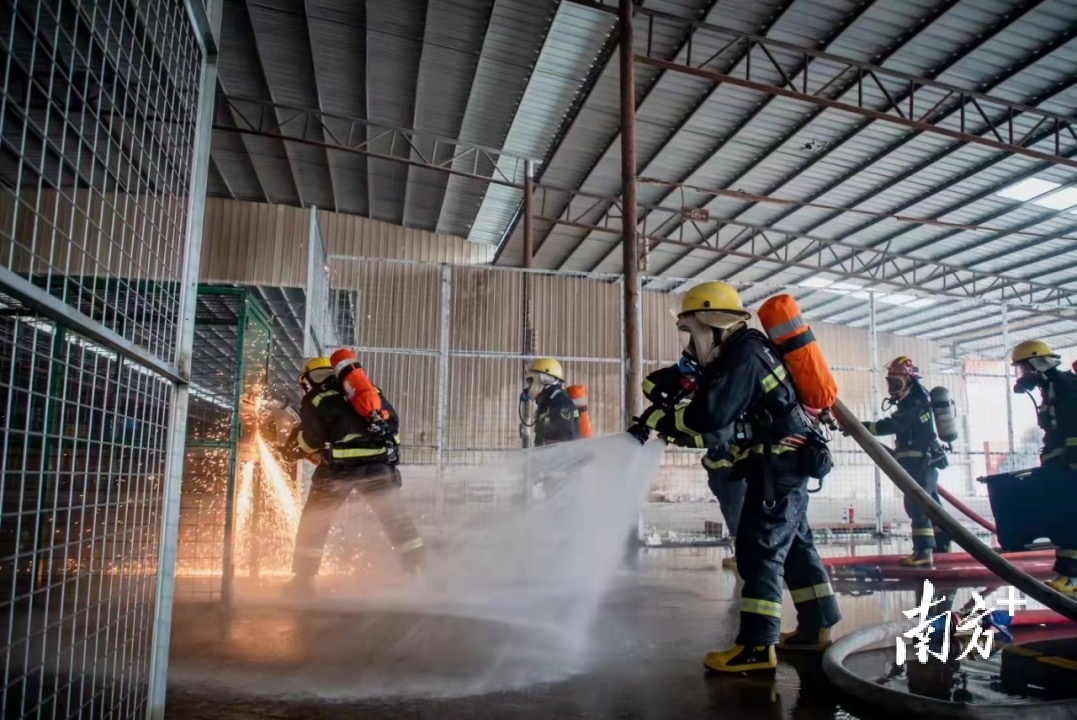 消防队伍开展应急救援演练。
