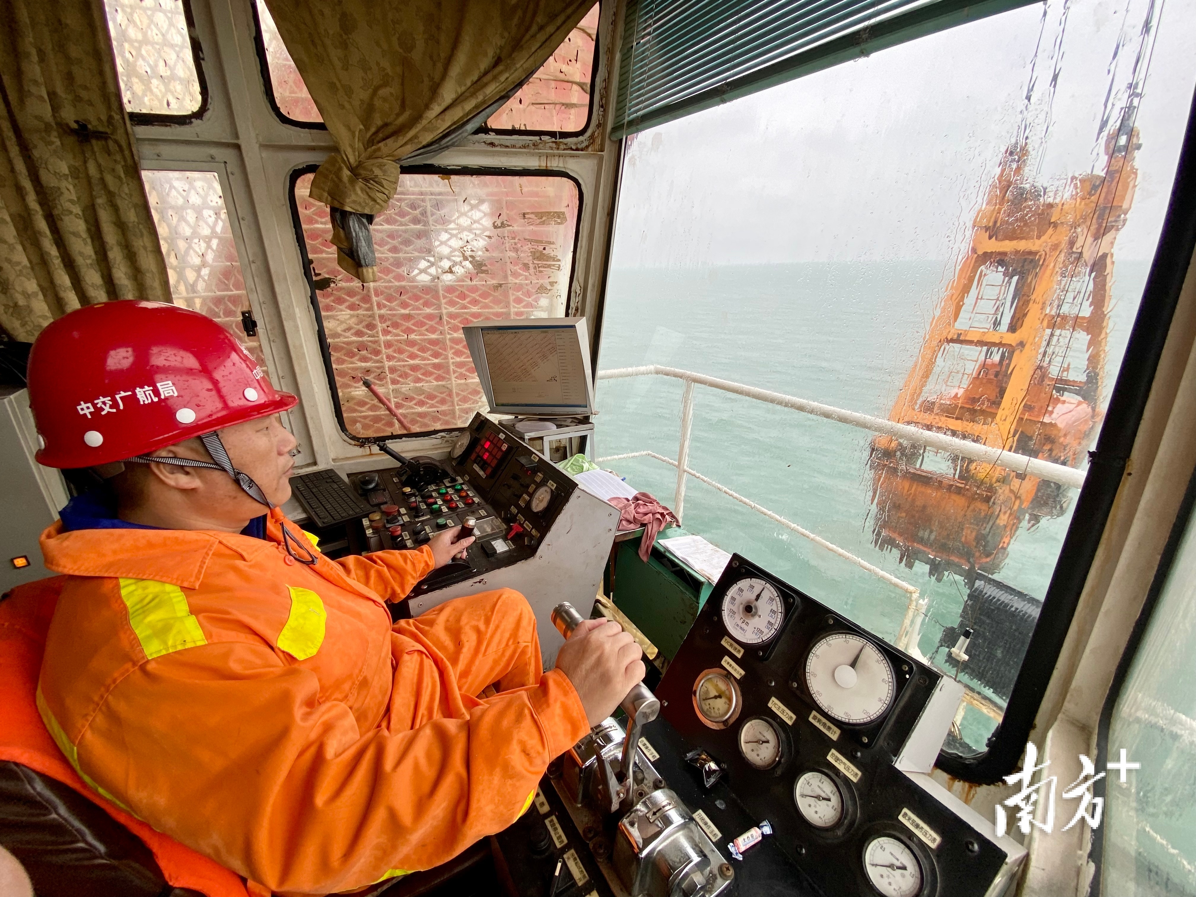 国内首艘具备定深平挖功能的“金雄”轮挖泥长梁家强,就是今年春节的留守者之一。他紧盯着眼前的显示器和工作舱外正前方,手脚并用操作抓斗从海底数十米处挖取淤泥,并转移到驳船上。