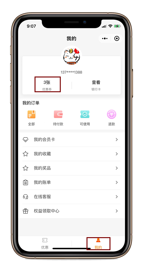 1. 微信小程序搜索“全民惠”--进入右下角“我的”--头像右下方“优惠券”,即可查看已领取的优惠券。