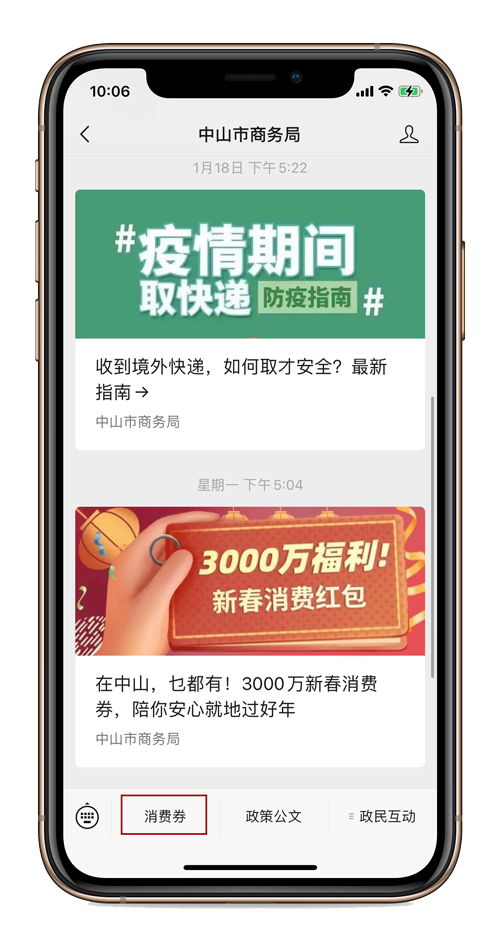 1. 微信搜索“中山市商务局”“中山发布”公众号;