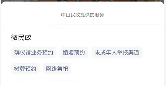 “中山民政”微信公众号平台。