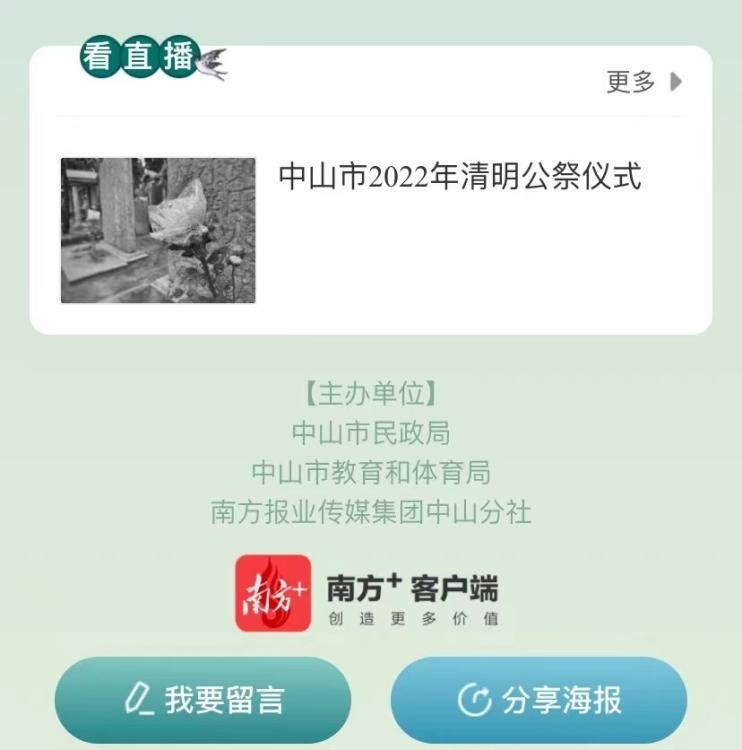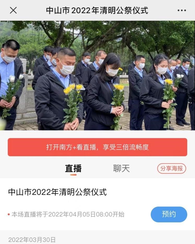 4月5日上午8时至10时,中山“云祭祀”平台还将同步直播中山市2022年清明公祭仪式。