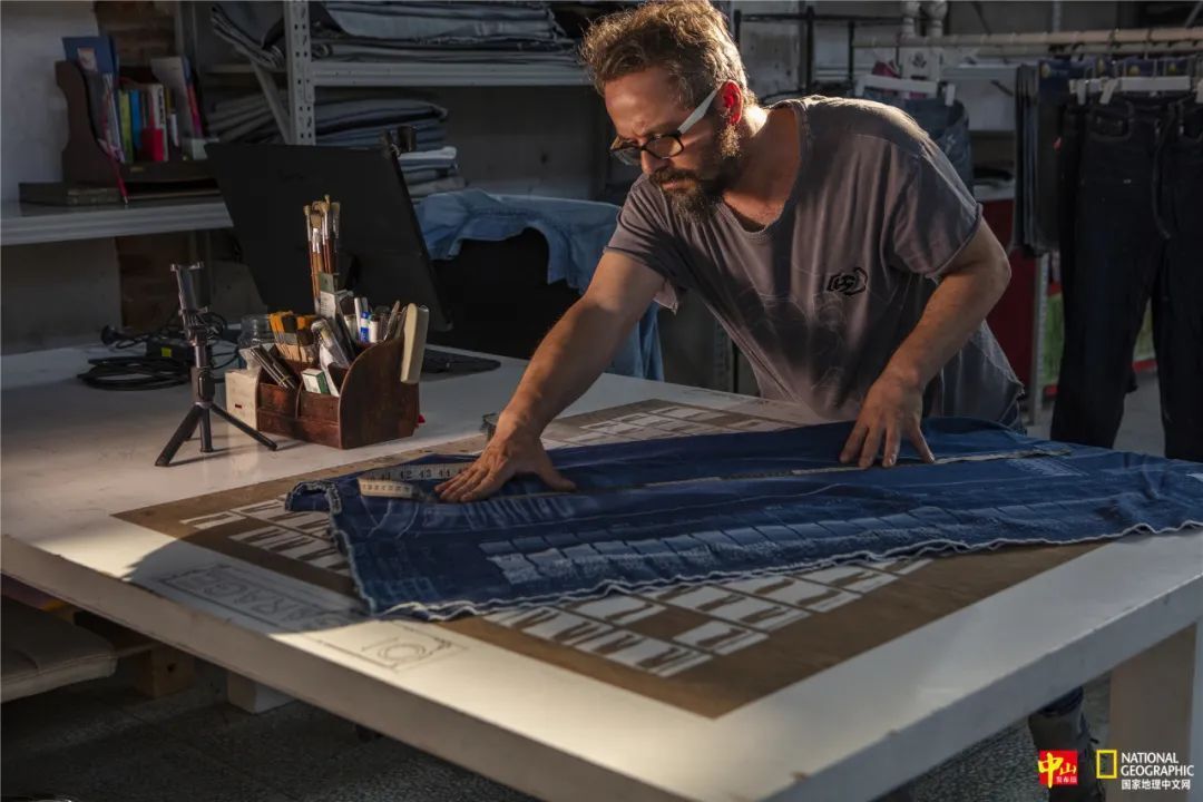 岐创文创园内,土耳其人ERCIN正在进行服饰制作。2008年,他跟随中国太太来到中山定居,在沙溪理工学院任教,开设激光雕刻在服饰生产的应用课程。(摄影:张展)