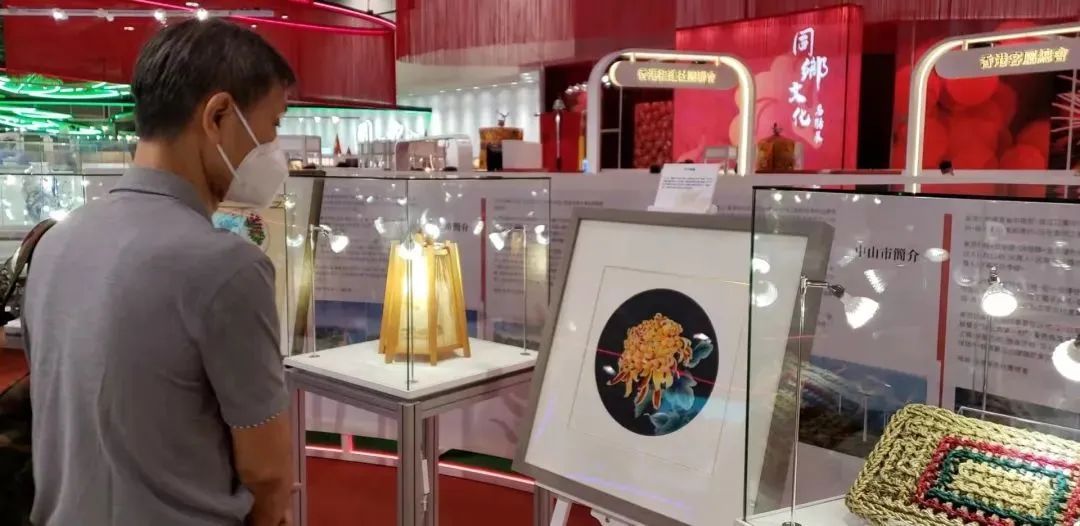在中山市委、市政府的大力支持下,香港中山社团总会积极参与本次展出的筹备工作,协助香港广东社团总会设置了中山展位,通过图文形式向广大香港市民介绍中山市。中山赠送的展品“菊绣”更是吸引了不少参观者的目光。“菊绣”,即小榄刺绣,是珠江三角洲地区的一种传统美术工艺,在针法技艺及艺术风格上自成体系,具有绣工精致、针法多样、色泽富丽的特点,极具岭南风土特色,于2013年被列入第五批省级非物质文化遗产名录。