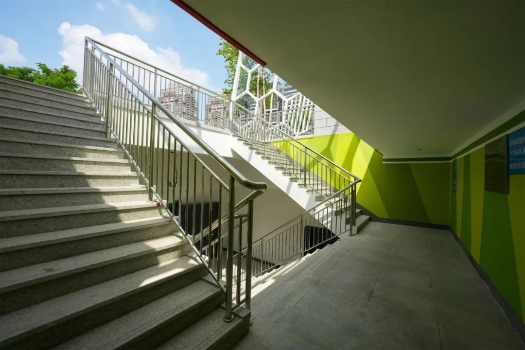地下车库通过楼梯出入口与上部相衔接,游客车辆可通过北广场东侧道路进入地下车库,停车后从楼梯直接到达紫马岭公园北广场地面,人防车库的建设投用有效缓解紫马岭公园“停车难”问题。