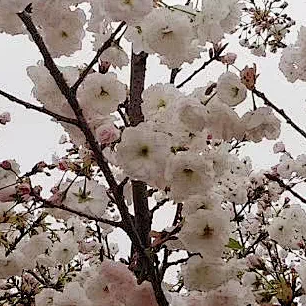 薄薄的阳光,斜射在翩翩静美的粉红与素白中,大片大片的花瓣织成一场让人屏息流连的樱花雨。