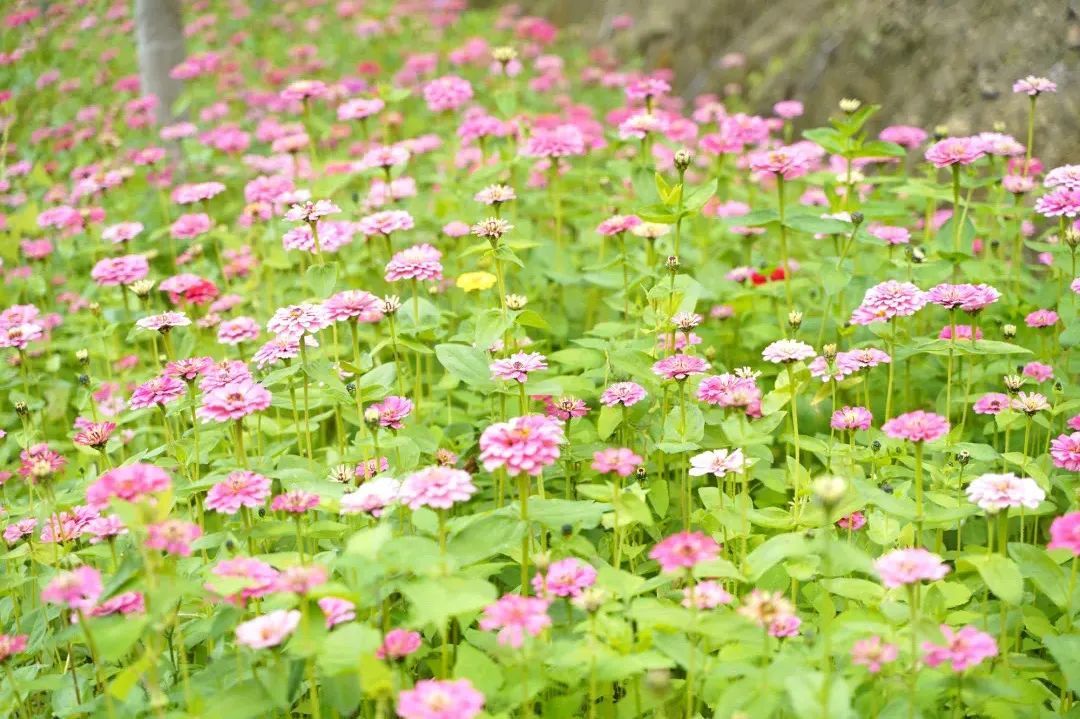 今年云梯山花海有丛林花海、红花风铃、黄花风铃,漫山遍野的花,竞相斗艳。置身美丽的花海中,仿佛进入了梦幻的童话世界,让人情不自禁沉醉其中,格桑花、万寿菊、孔雀草花竞相盛放。