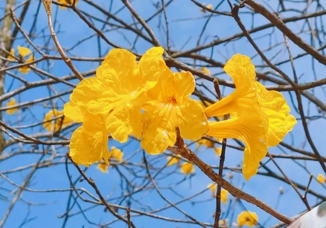 由于今年天气寒冷,黄花风铃比往期开花时间较晚,元宵节前后已逐渐盛开。