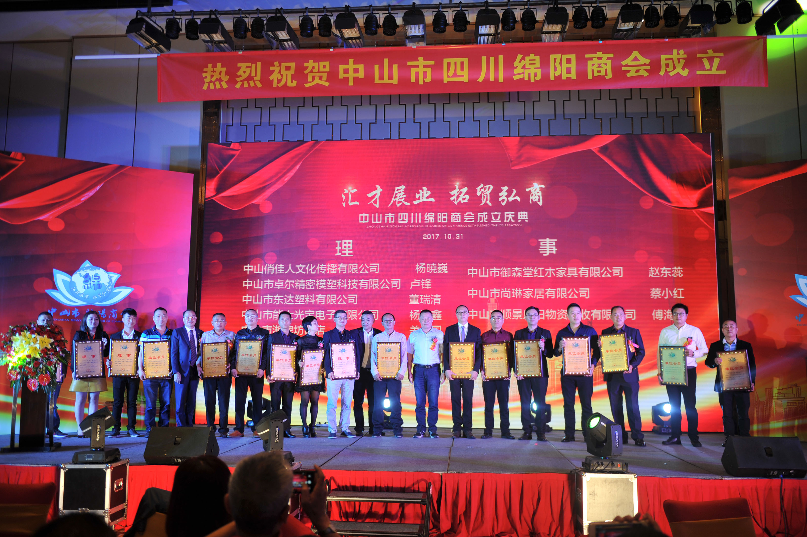 10月31日晚,中山市四川绵阳商会成立庆典在中山举行,宣告该商会正式成立,中山客商团队再添一名新成员。