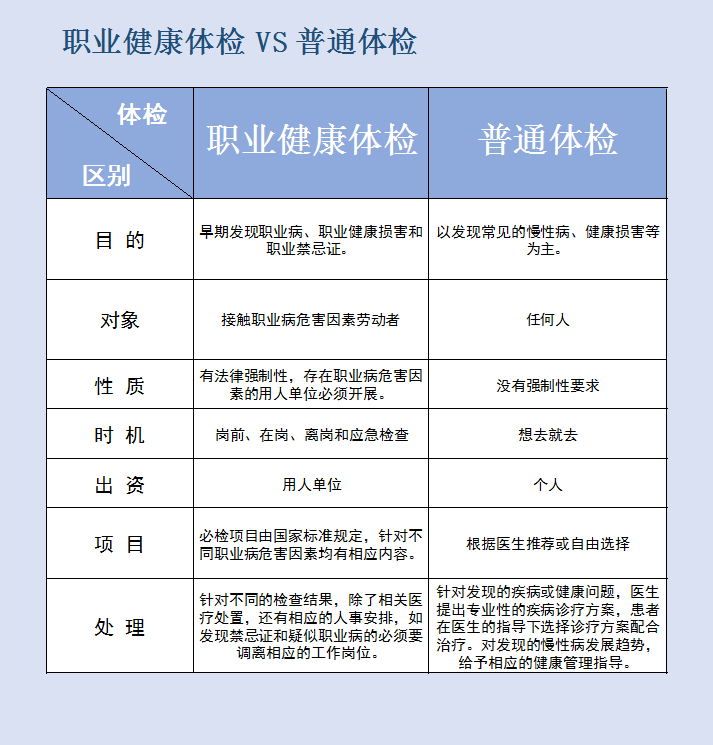 值得一提的是,职业健康体检跟普通体检是两码事。按《职业病防治法》要求,接触有毒有害作业的员工都要按规定进行职业健康体检,并建立职业健康档案。