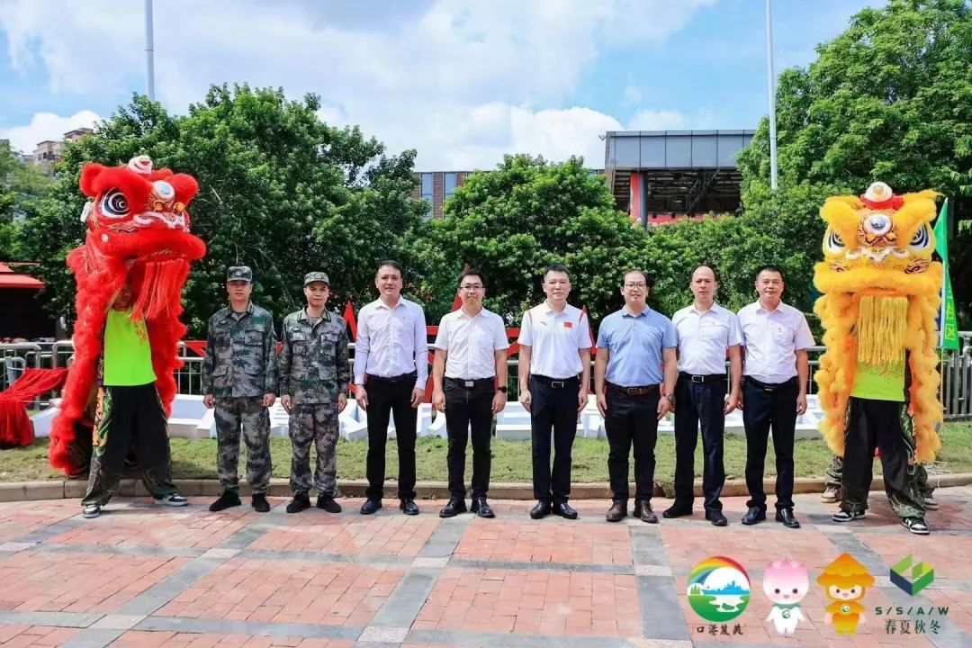 苏嘉威、黄建锋、许策明为港口镇拥军主题公园揭牌。