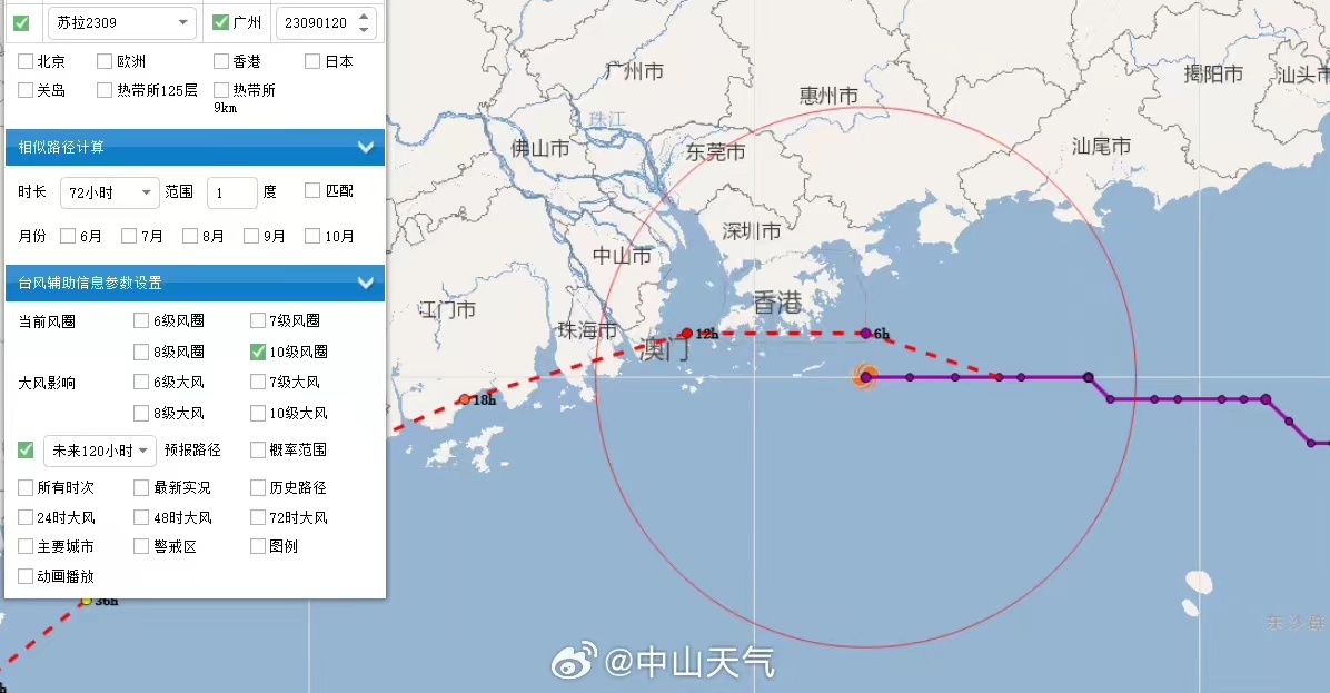 根据气象、水文、海洋部门预测,超强台风“苏拉”将于9月1日夜间在香港或附近登陆,预计9月1日傍晚起对中山市造成严重风雨潮影响,致灾风险高。