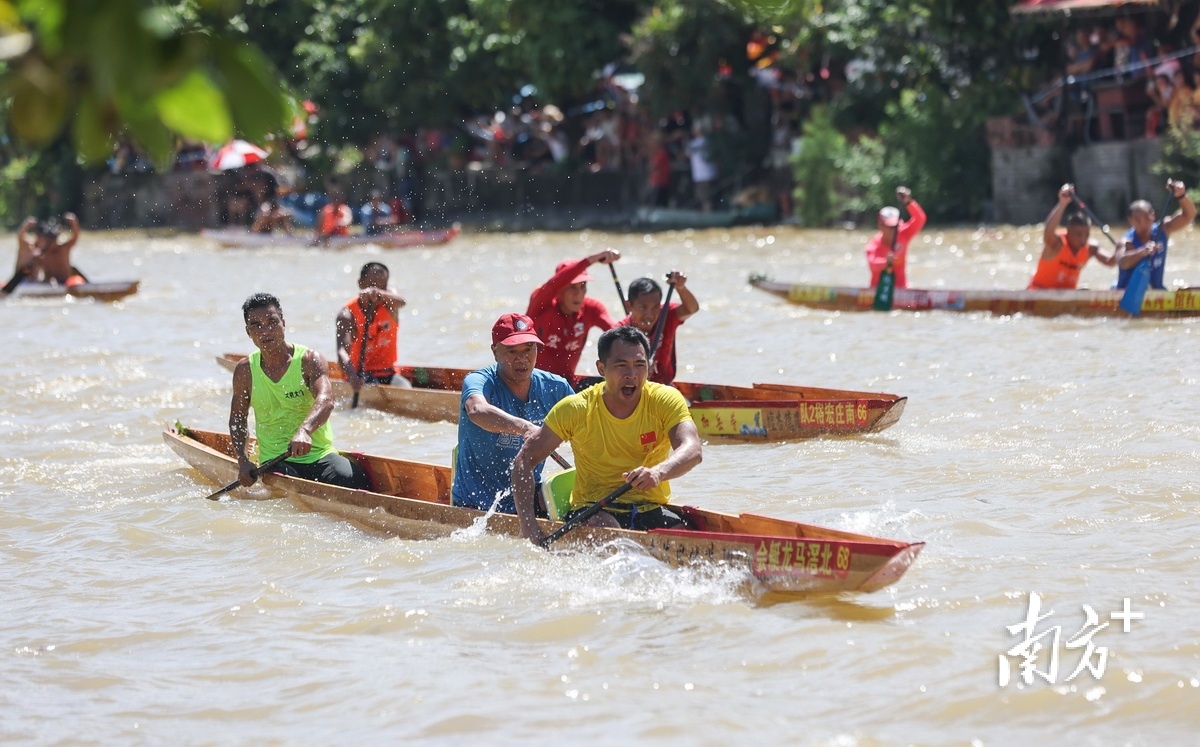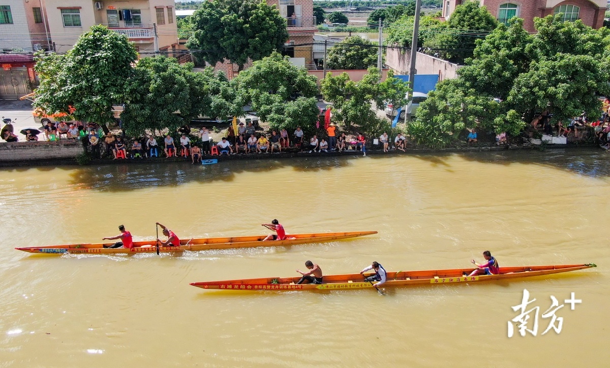 三角镇三人根艇赛现场。 南方+ 叶志文 拍摄