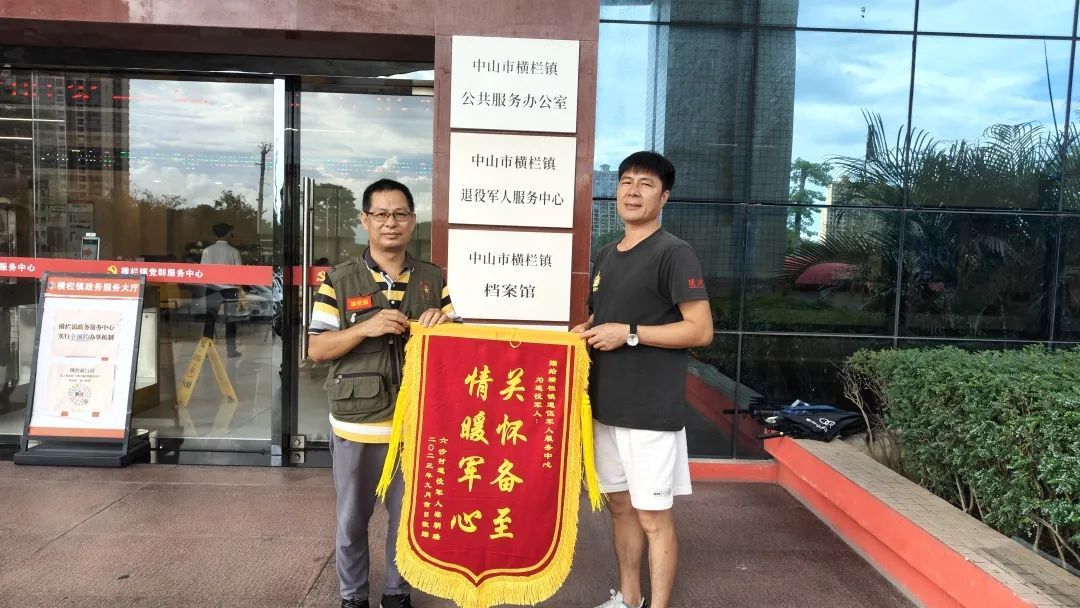 ▲退役军人服务中心接受退役军人赠送锦旗。