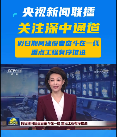 10月3日,央视新闻联播关注深中通道,推出相关报道《假日期间建设者奋斗在一线重点工程有序推进》,为假日期间,粤港澳大湾区,海面下30米的深中通道海底沉管隧道中,仍在进行最后两道隔断封门的拆除,为11月深中通道全线贯通做准备的建设者们点赞。