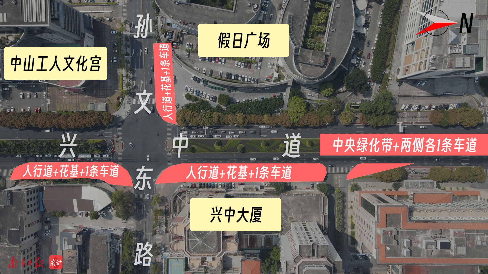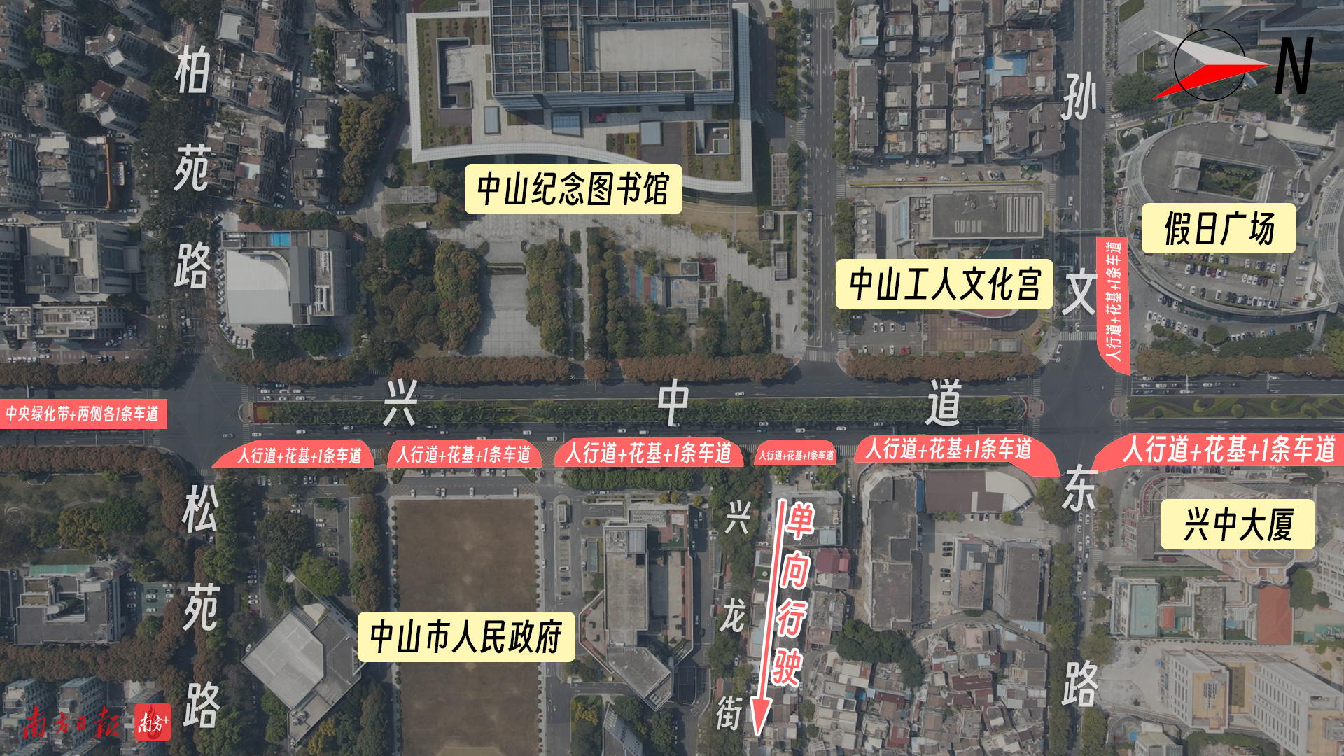 据悉,前期工程施工期间需占用兴中道东侧(市政府侧)人行道及一条车行道,占用兴中站南北端(即假日广场和中山市民政局段)中央绿化带单侧一条车行道、另侧1.5米宽车行道,假日广场侧施工区域需占用孙文东路人行道及一条车行道。