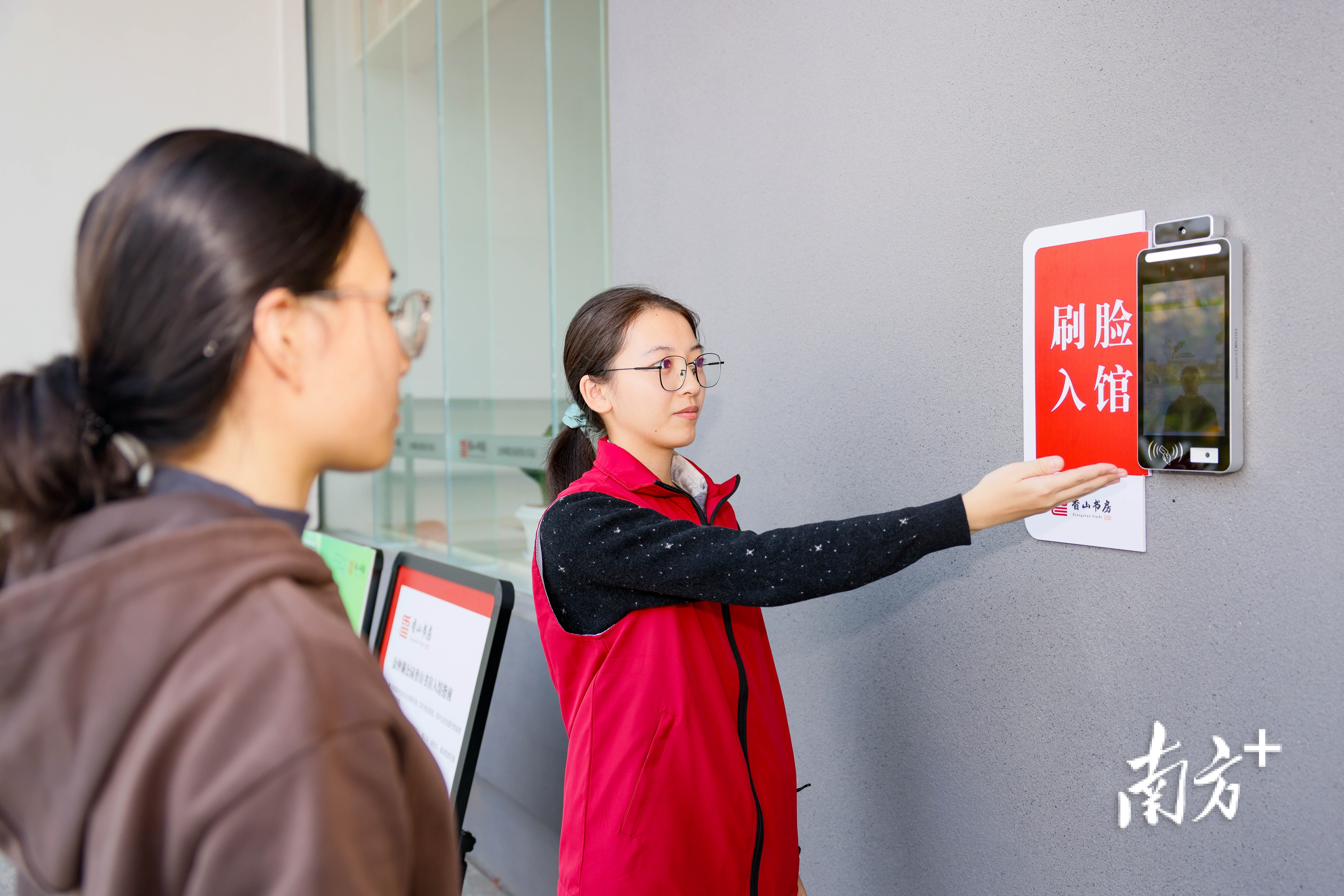 青年志愿者在金钟湖公园香山书房内服务读者。 南方+ 卢子衡 拍摄
