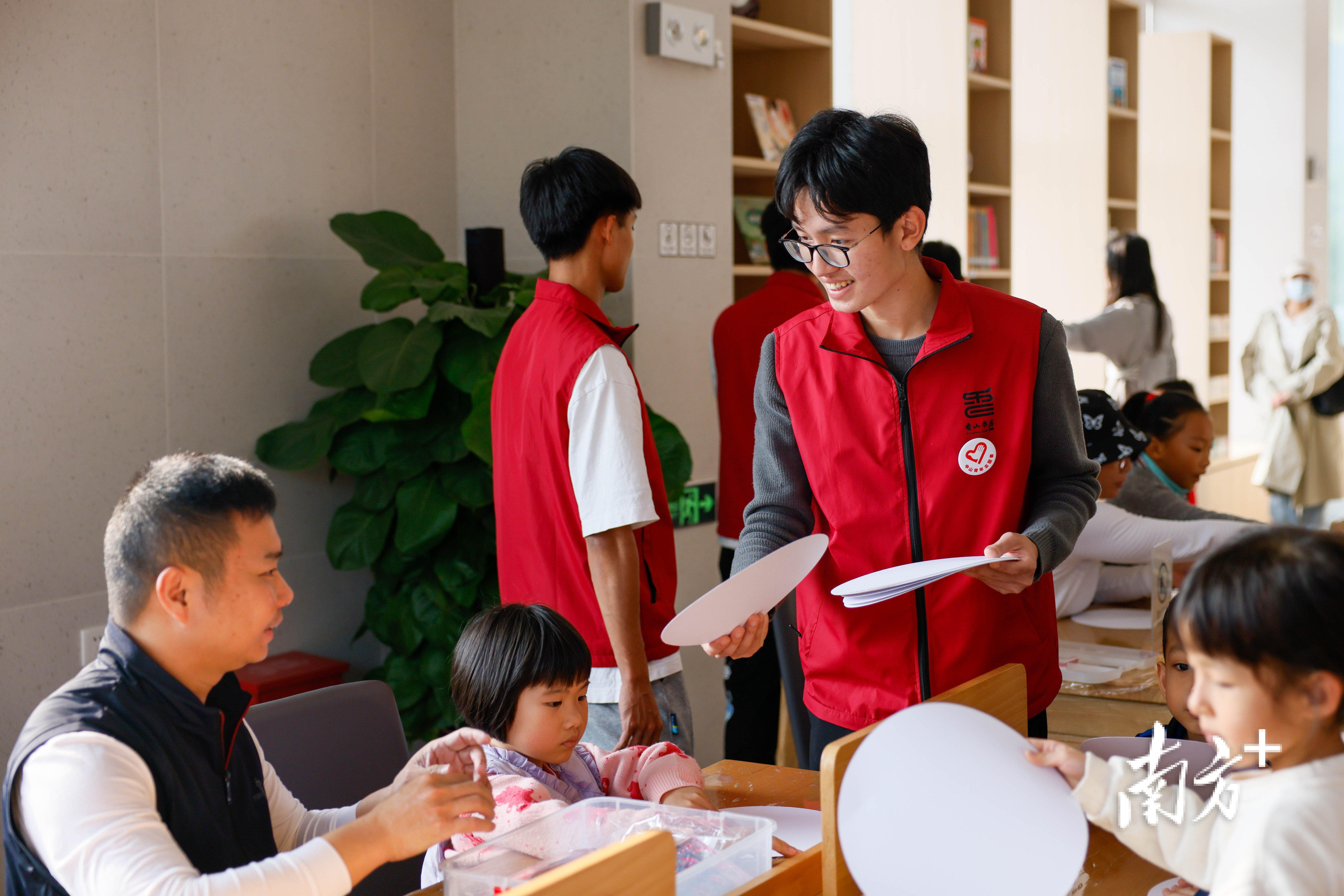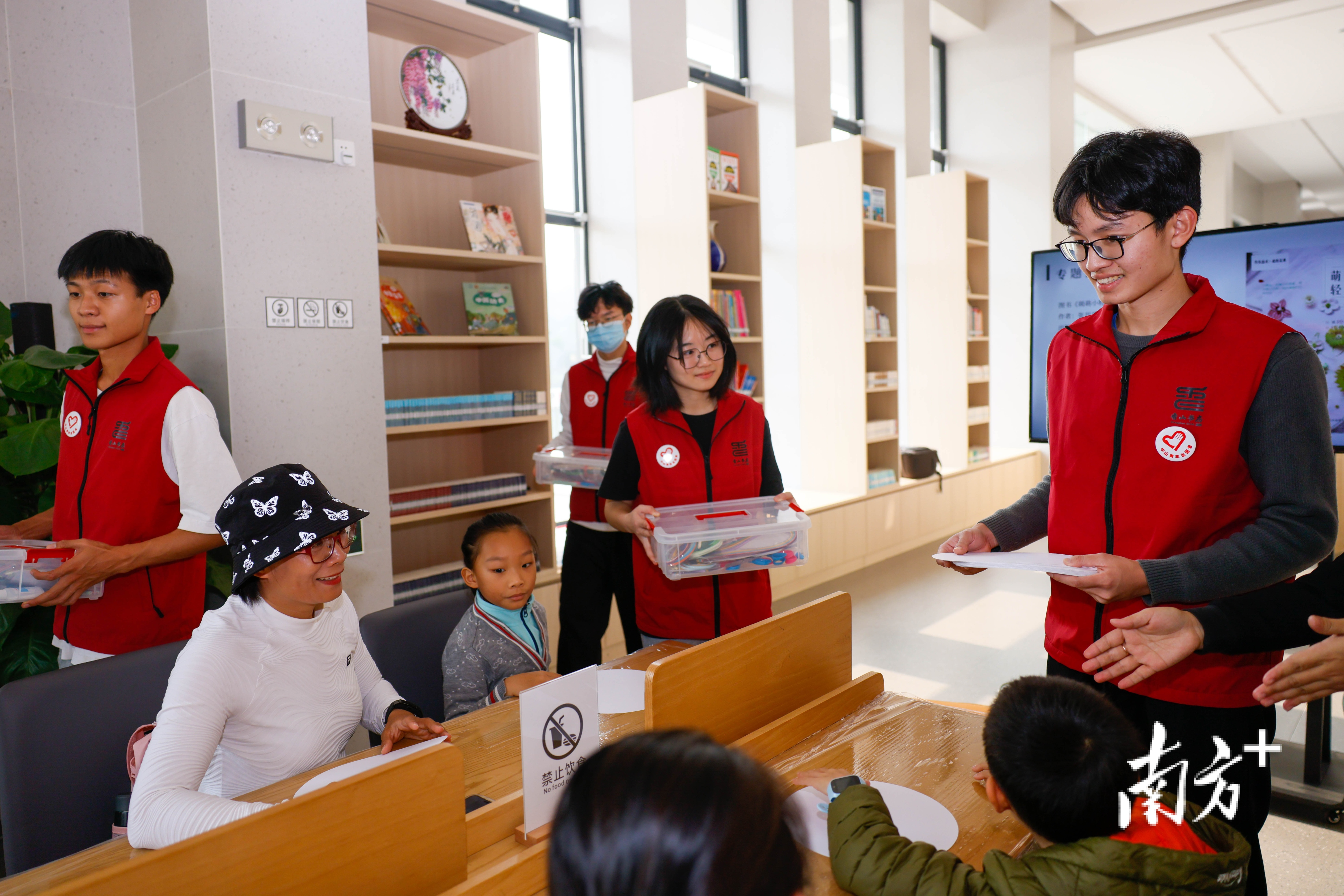 青年志愿者们在金钟湖公园香山书房协助开展亲子活动。 南方+ 卢子衡 拍摄