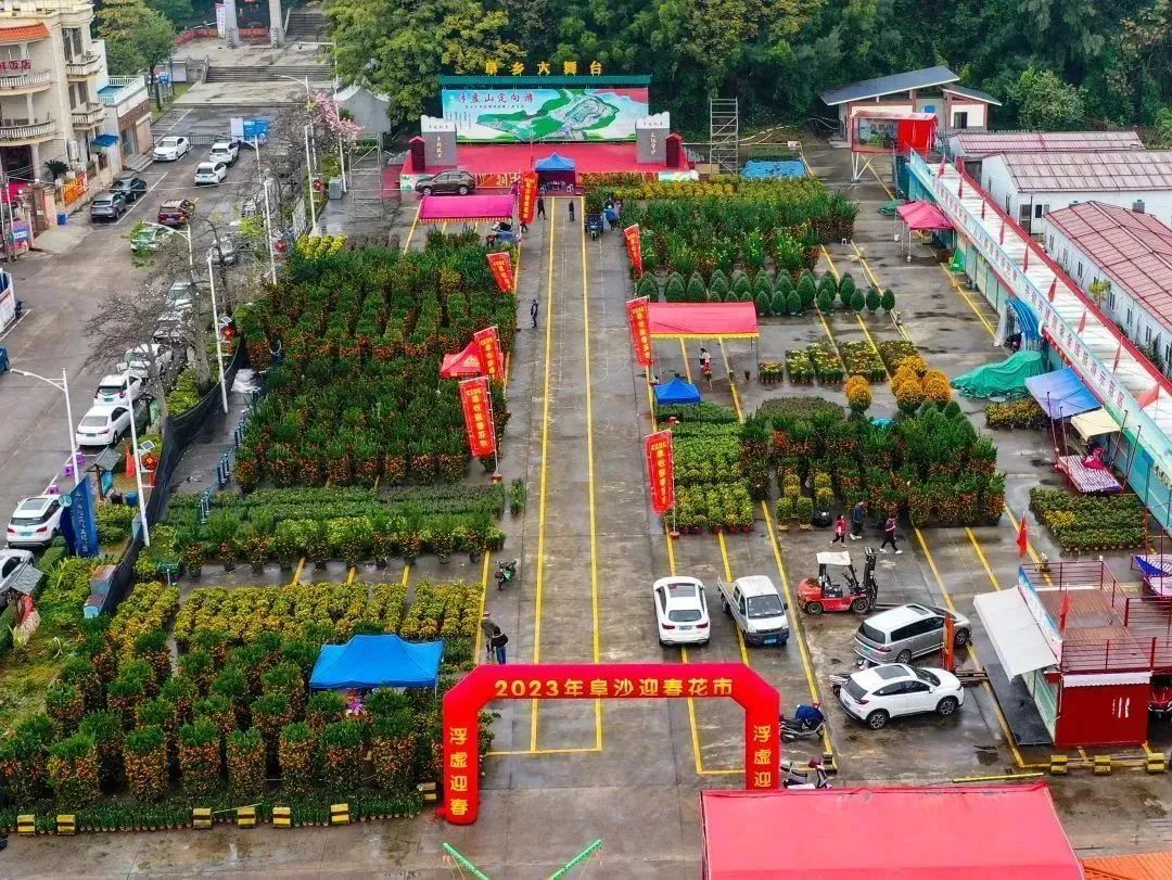 2024年阜沙镇迎春花市分为阜沙镇阜晓街花市及阜沙镇浮虚山文体广场花市。