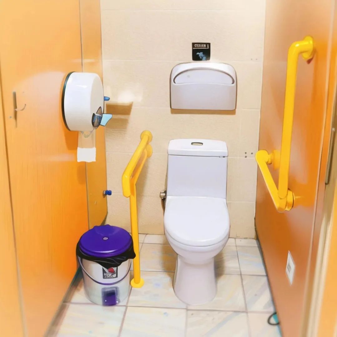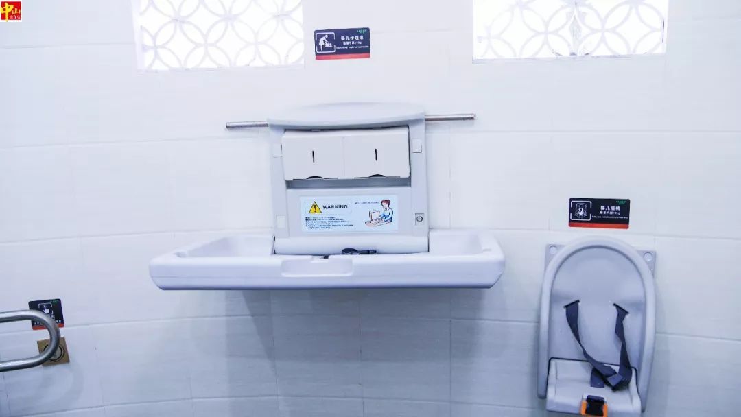 第三卫生间设施也非常齐全,婴儿座椅、婴儿台、儿童厕位、洗手台、干手机、残障人士辅助设施应有尽有。