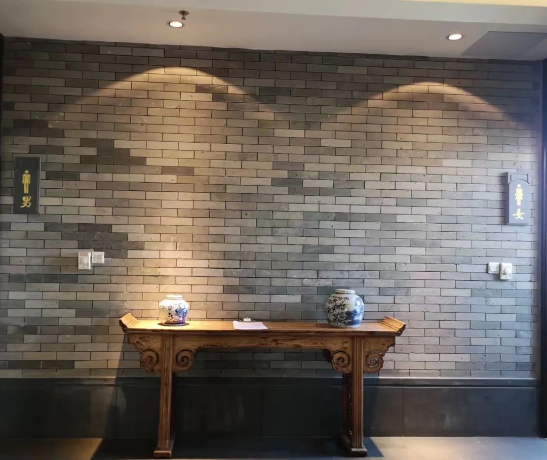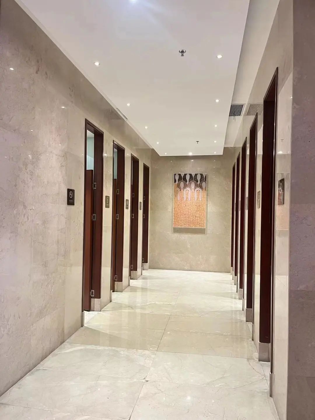铺设仿大理石砖的墙面、地面搭配不同光源的室内,整体风格敞亮干净。