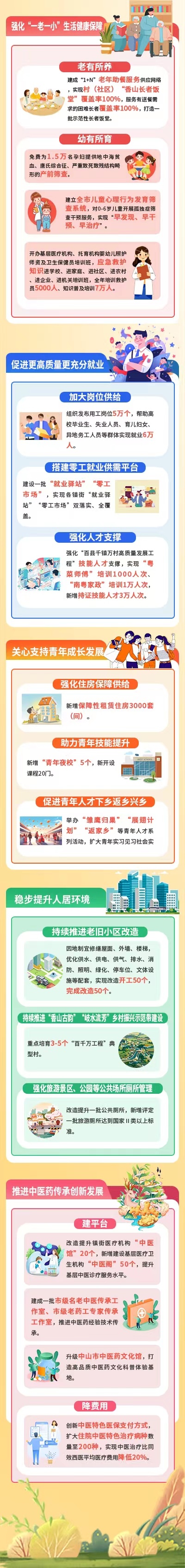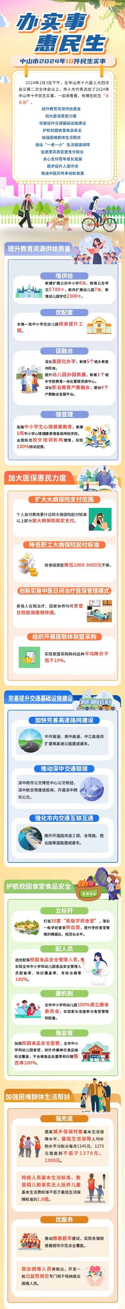 今年中山市十件民生实事内容涵盖教育、医疗、交通等热点领域,同时也向中医药发展等新领域拓展,向市民送出了福利更多、更全面、更贴心的民生礼包。让我们一起来看看有哪些新福利吧。