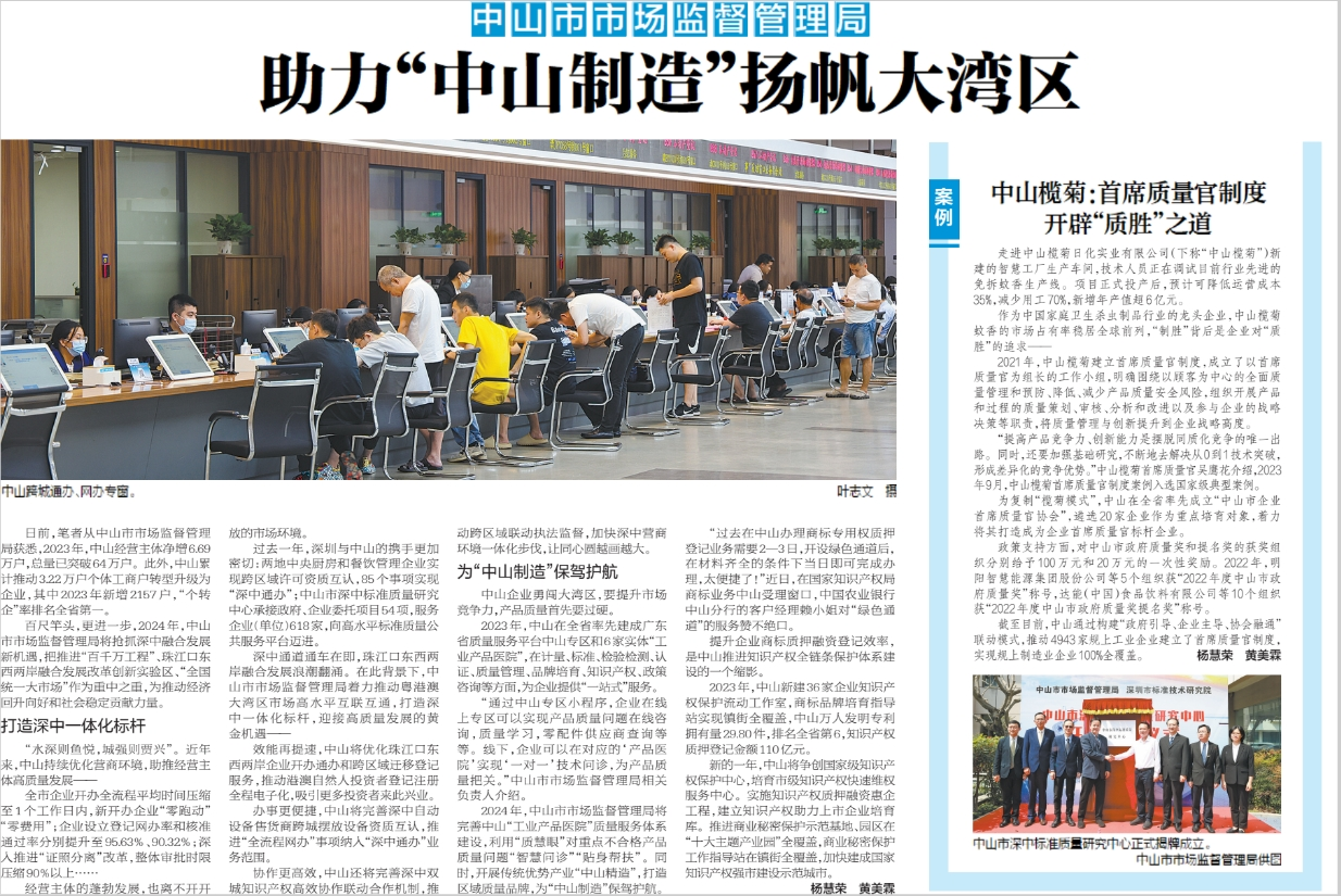 中山榄菊:首席质量官制度开辟“质胜”之道