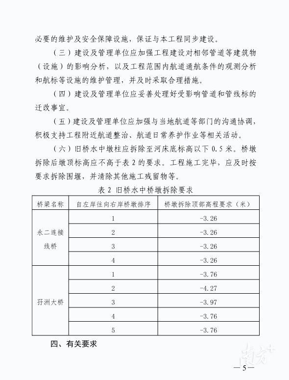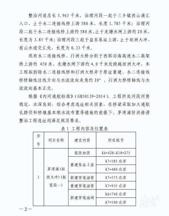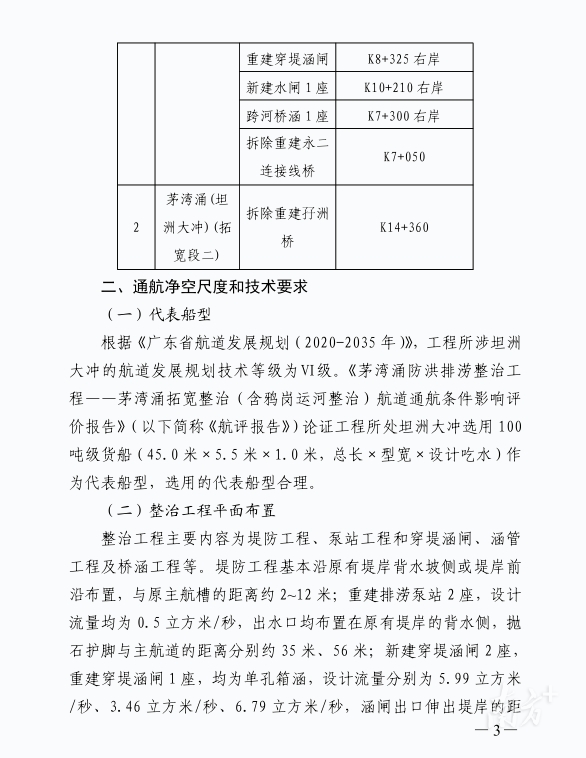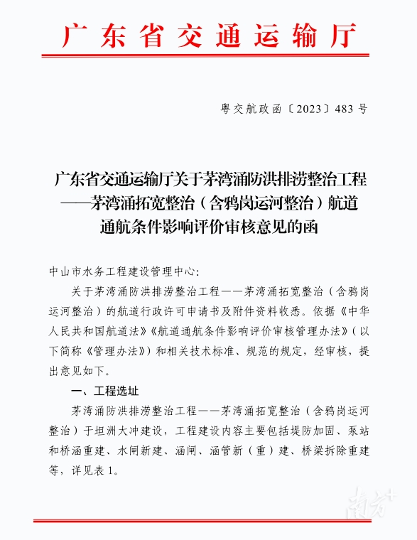 2023年10月,广东省交通运输厅曾发布关于茅湾涌防洪排涝整治工程——茅湾涌拓宽整治(含鸦岗运河整治)航道通航条件影响评价审核意见。文件显示,永二连接线桥和孖洲大桥拟拆除并于原址重建。原文如下: