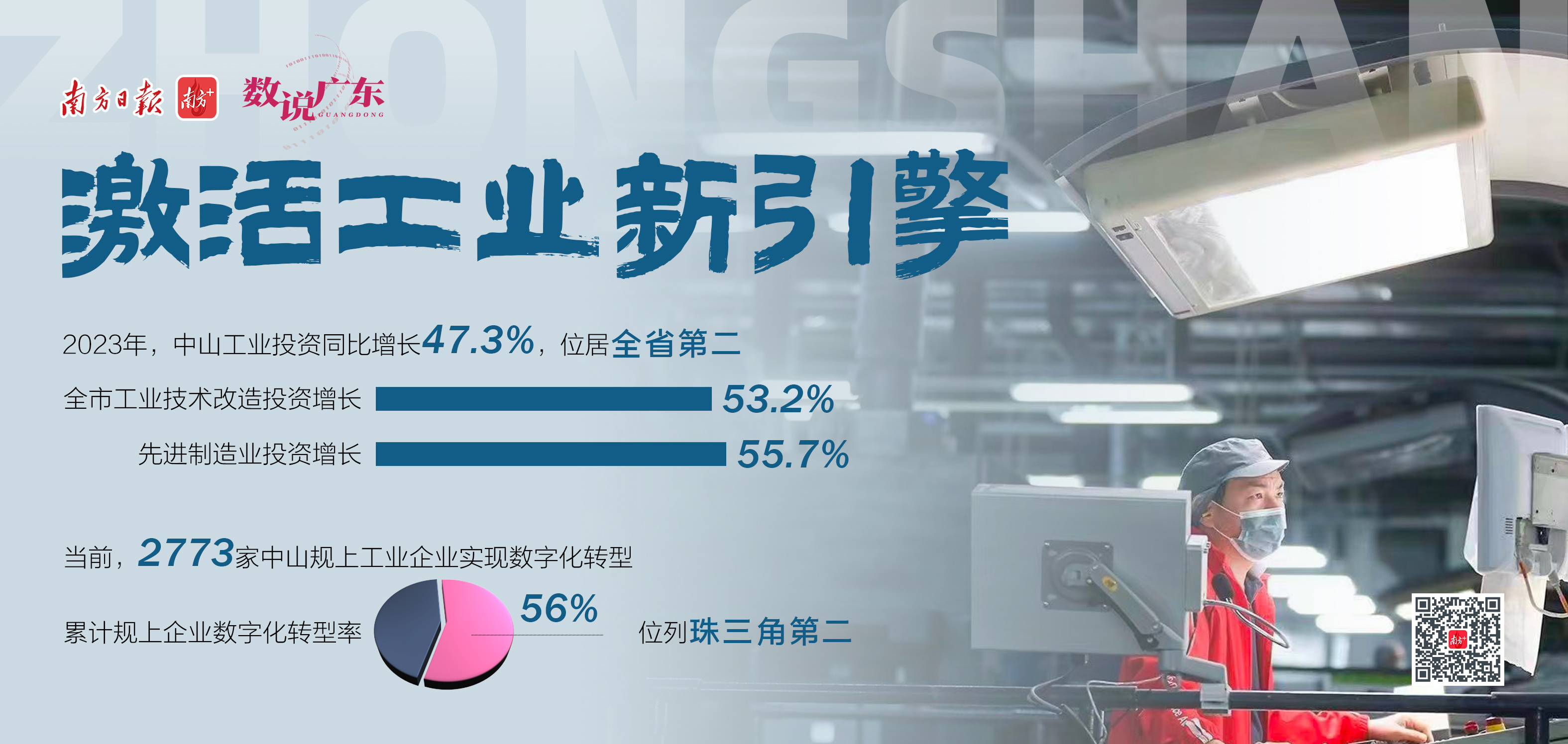 企业发力、政府支持,一些变化实实在在地体现在“数据单”上:2023年,中山工业投资同比增长47.3%,位居全省第二。其中,工业技术改造投资增长53.2%,先进制造业投资增长55.7%,高技术制造业投资增长53.4%。