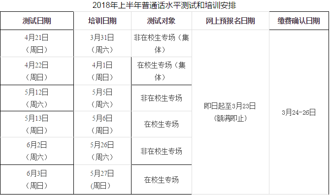 1月4日,记者从中山市教体局获悉,中山将于2018年4-6月举行普通话水平测试。2018年上半年普通话水平测试,设在校生专场(全日制在读学生)和非在校生专场。所设测试专场仅接受此类考生报考。
