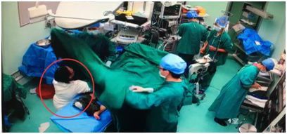 与此同时手术室护士连燕琴和谭敏华分工明确,迅速协助产科医生为产妇建立静脉通道、留置尿管、清点器械和敷料、铺巾消毒等术前准备工作……此时此刻的手术室里,每一名医护都紧紧的掐住一分一秒,忙碌而紧凑的相互配合着。在麻醉完成,产妇进入麻醉维持状态时,产妇腹部皮肤消毒工作也同时完成,产科医生握起手术刀开始手术。