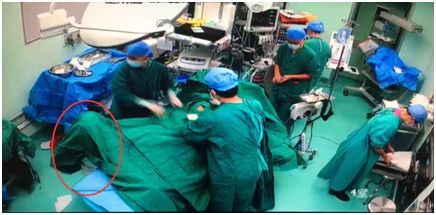 产科二值医生林琼燕接到住院总医师电话便第一时间来到手术室,手术室多名医护启动应急预案,迅速完成了手术用物准备,等待产妇进入手术室。