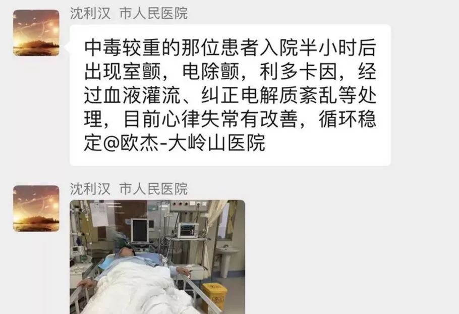 经追问患者家属及相关人员,两患者发病前服用较大量含附子、雪上一支蒿的药酒,医生诊断两名患者符合乌头碱中毒表现,考虑需要在有心脏起搏条件的医院进行救治,立即与东莞市人民医院ICU取得联系。