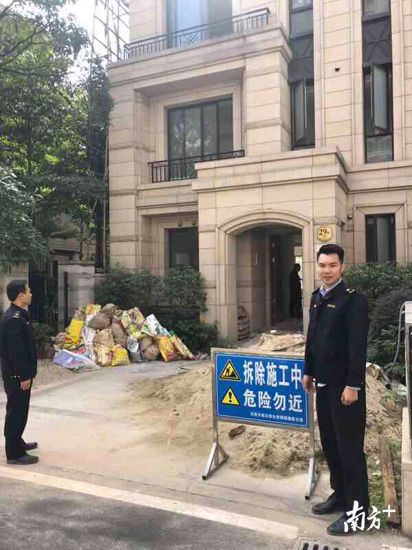 早在今年8月21日,万科朗润园内就有一处别墅因违规加建被强制拆除,但是业主仍然顶风作案。为遏制住宅小区的违法建设行为,塘厦城管分局执法人员加强巡查,与物业管理公司、特勤队、镇属有关部门强强联手,采取有效措施制止施工,积极推进违建拆除。