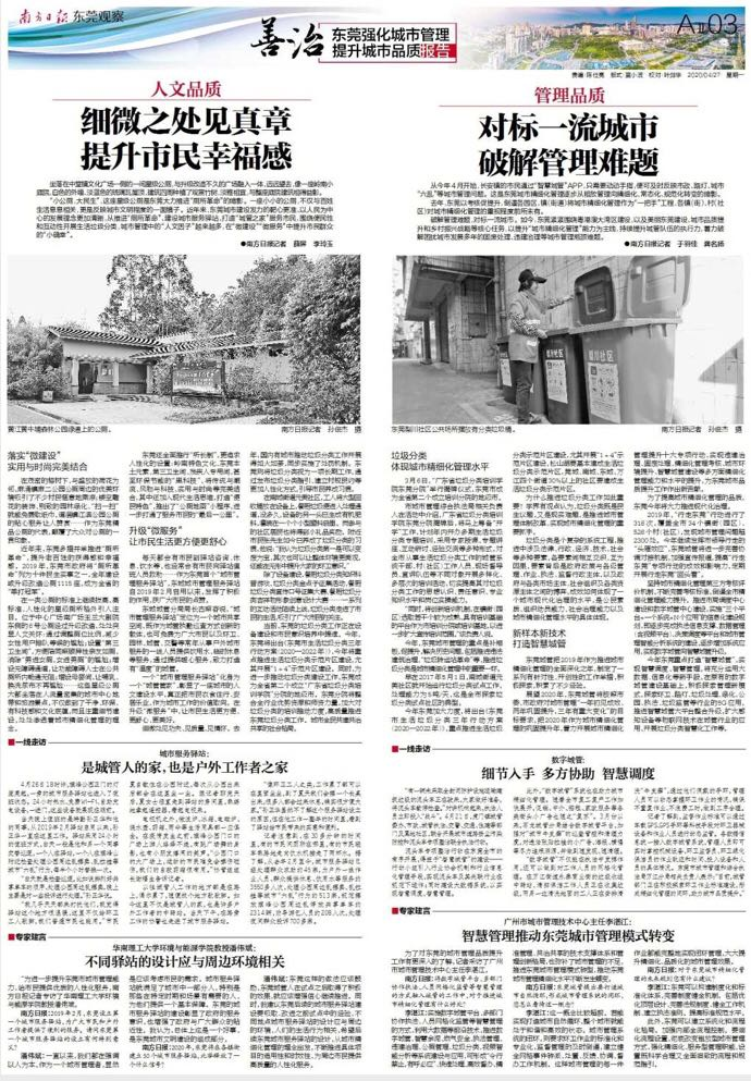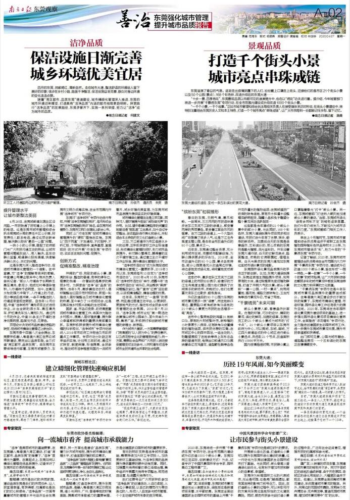 中国城市环境卫生协会副会长、广东省环境卫生协会会长陈善坤分析,总结东莞城市品质三年提升计划的实施效果,东莞城市管理已经从粗放式变成精细化,各项工作很接地气,是值得其他城市学习的。东莞在为当地市民打造一个舒适的生活环境上,下了很大的苦功,体现了“绣花功夫”。
