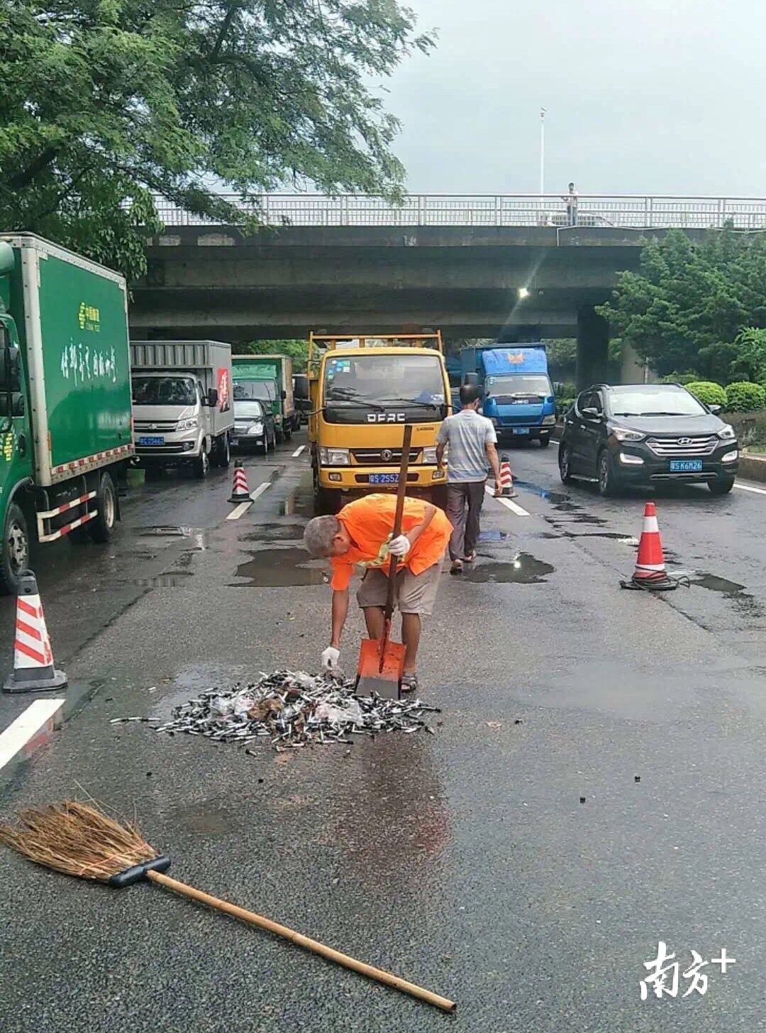 8月3日11时53分,东莞市城市管理和综合执法局接群众反映,松山湖大道蟠龙立交往松山湖方向道路,有大量铁钉遗撒在路面,给过往车辆带来极大安全隐患,现场有多辆汽车中招停在路边,其中一辆疑似爆胎。