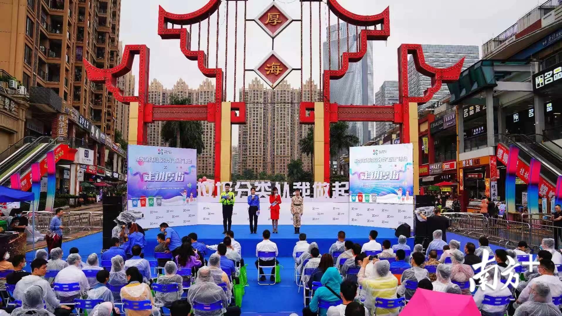 目前,厚街镇公共机构生活垃圾分类已实现全覆盖,同时生活垃圾分类示范区建设已全面铺开,加速推进镇中心区和环冈、宝屯、珊美、竹溪、寮厦等5个示范片区建设。此外,辖区的23个物管小区陆续开展“楼层撤桶”“定时定地投放”“入户宣传”等工作。