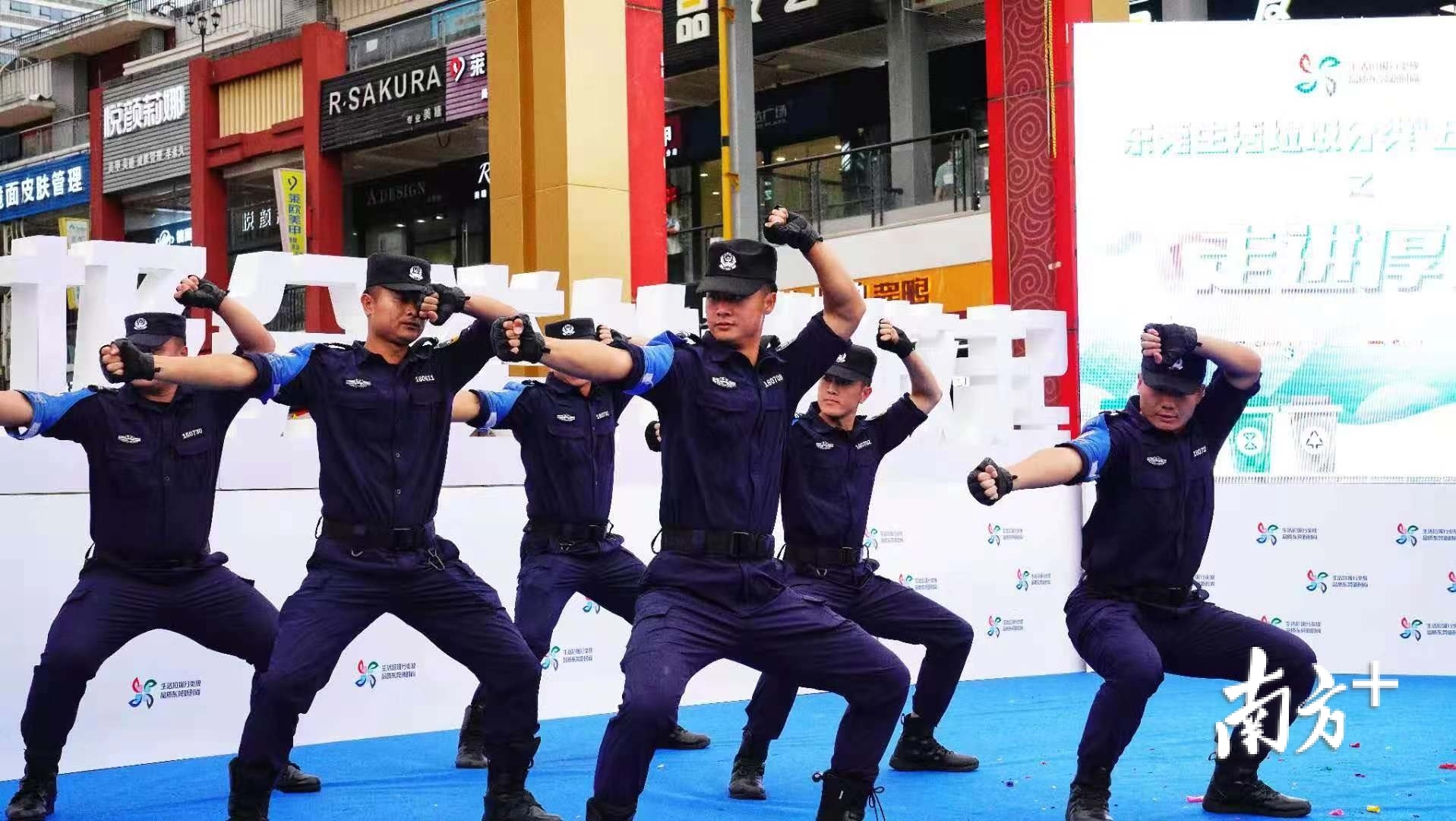 本次活动特邀厚街公安特警表演拳术“擒敌拳”,一声令下,英姿飒爽的特警们走上舞台,迅速组成一个阵型,拳风霍霍,气势昂扬,刚劲有力。“我是厚街公安,我为生活垃圾分类代言!”厚街公安的特警们齐为东莞生活垃圾分类加油鼓劲。