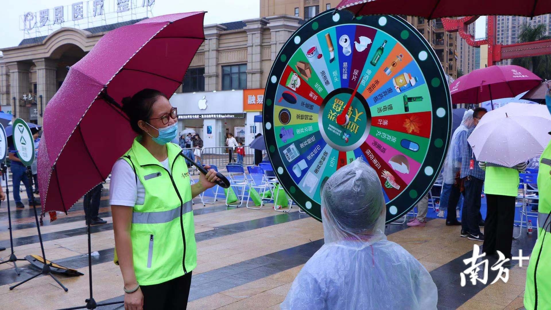 现场还设置了游园环节,通过大转盘、投骰子等互动方式吸引了众多市民前来参与。每一个游戏区域都排起了长队,市民在游戏中掌握分类小窍门,工作人员和市民边开展游戏边讲解分类知识,现场气氛热烈。