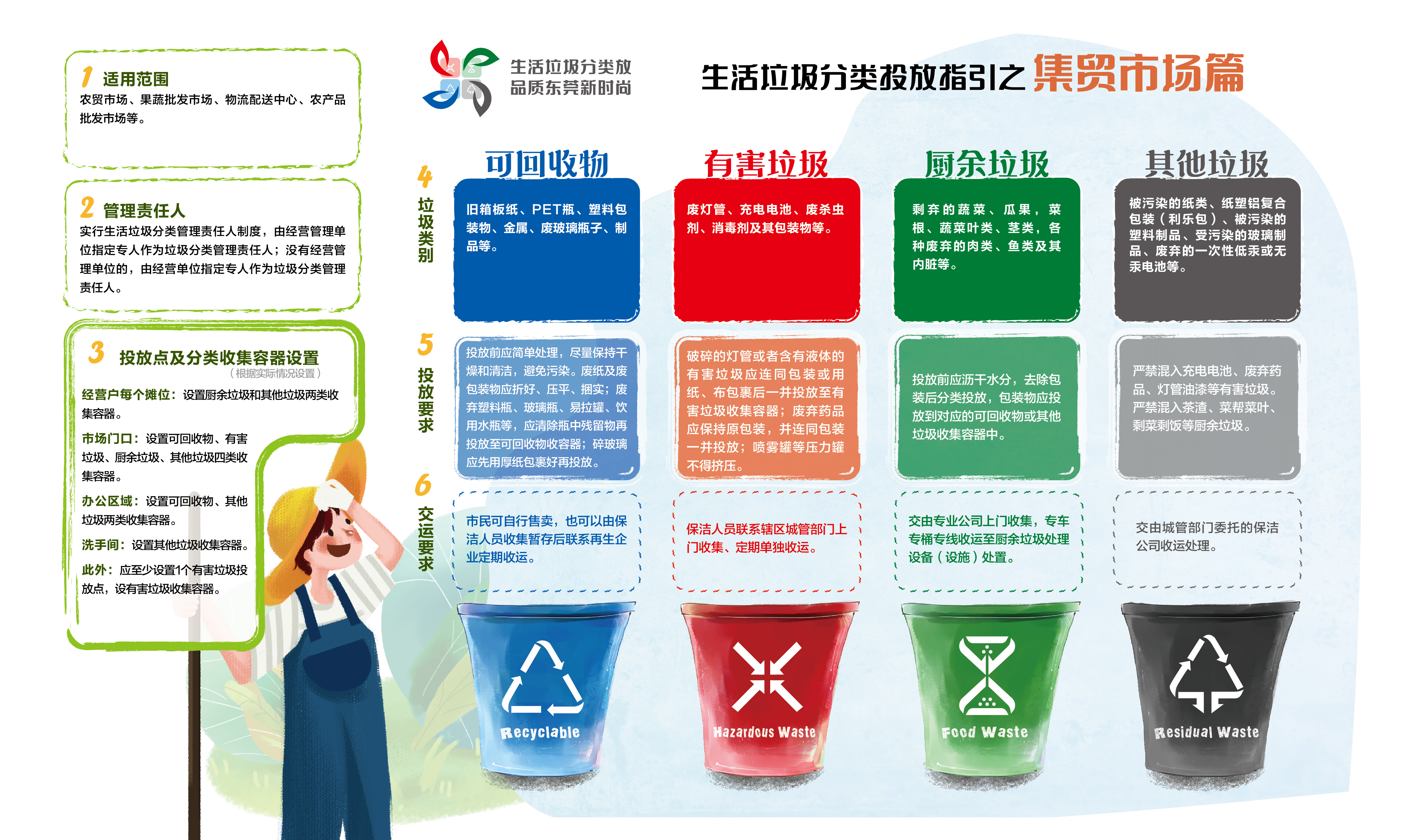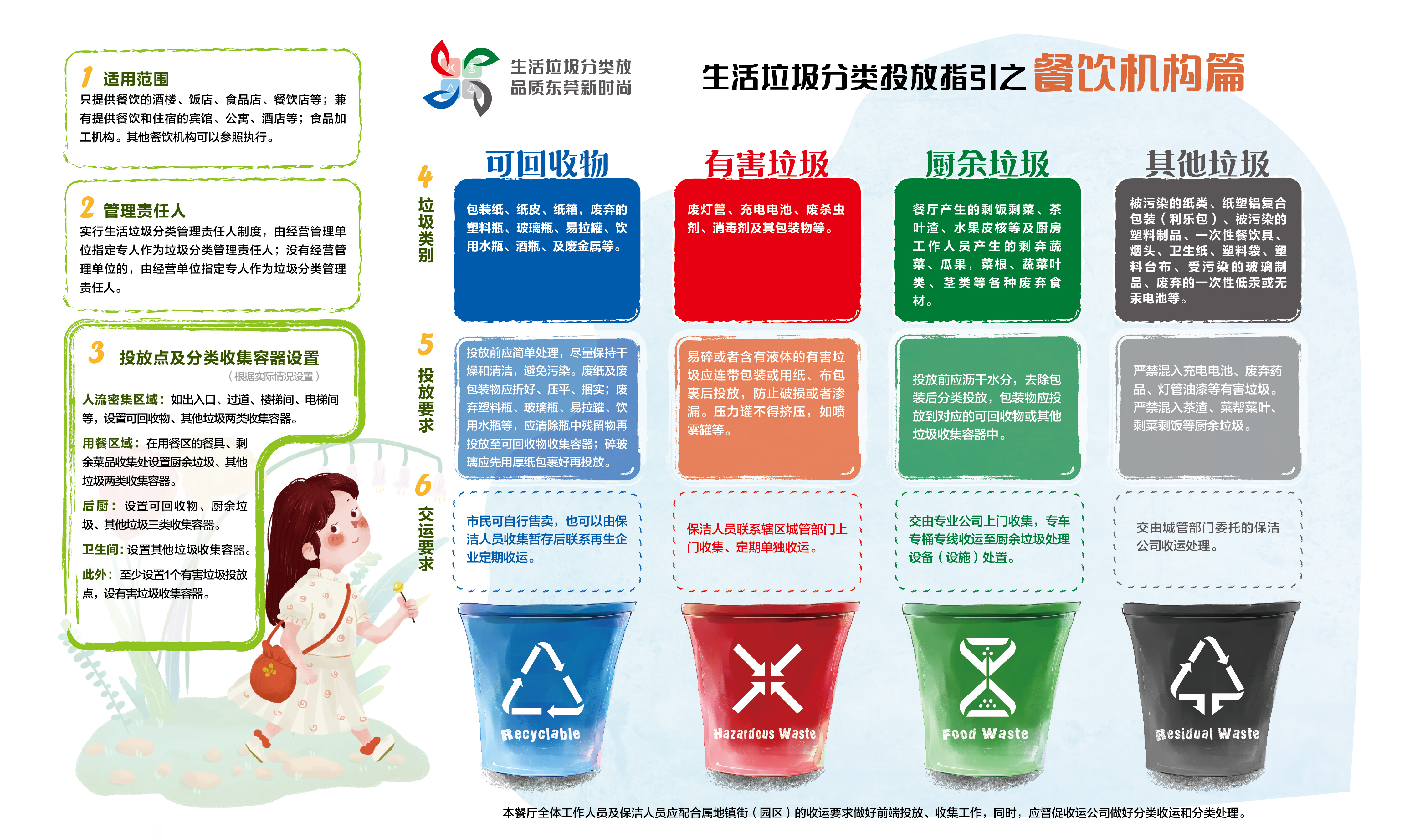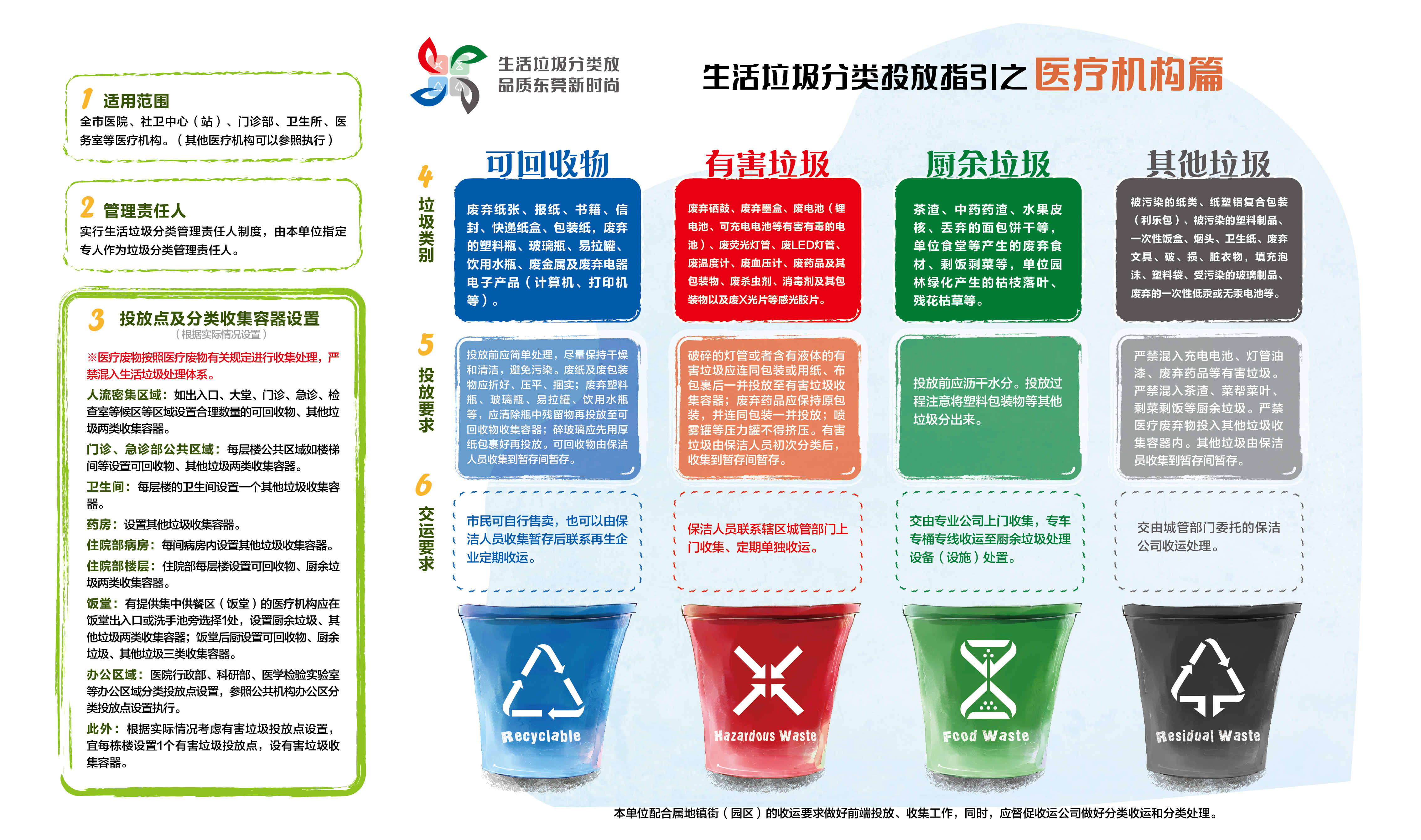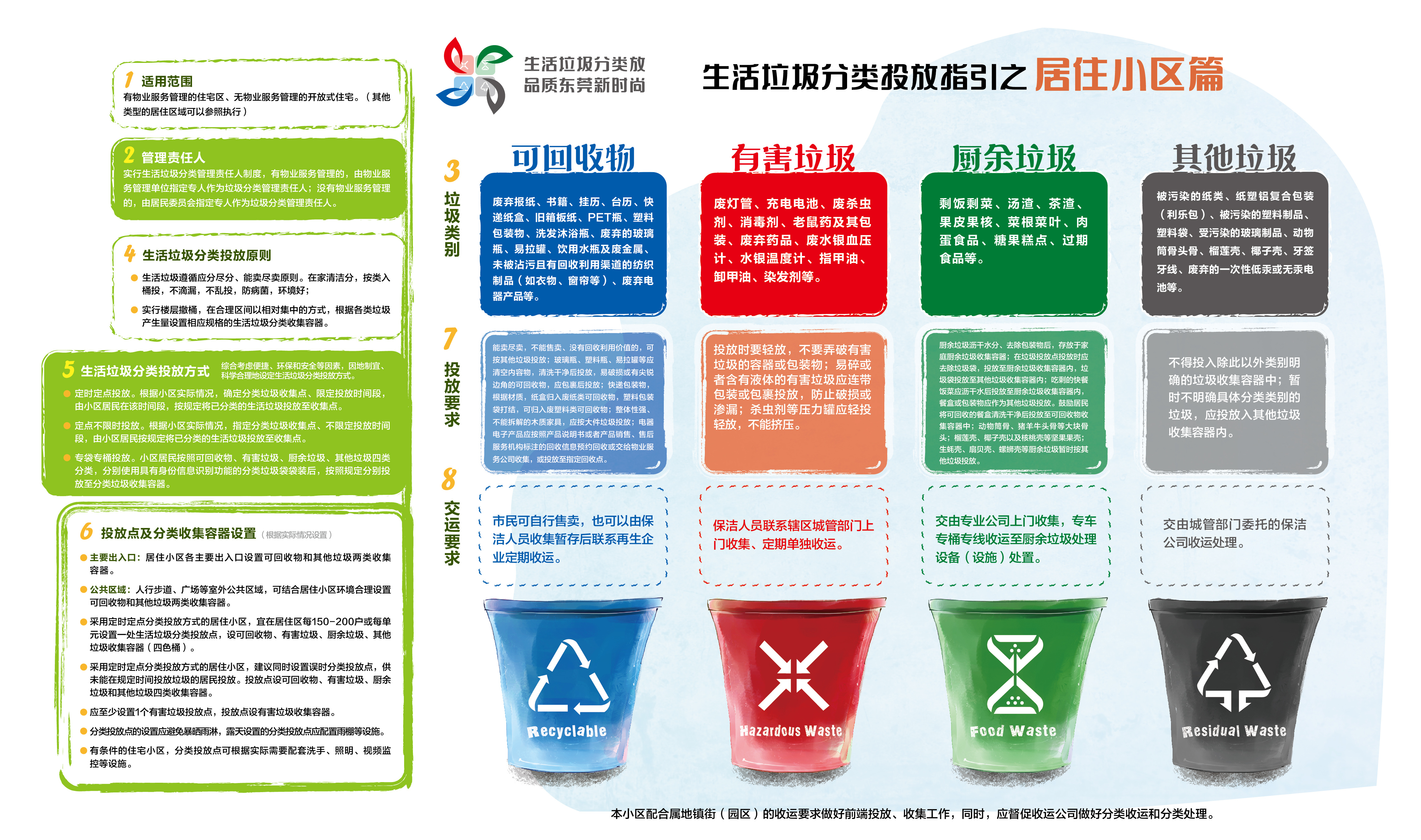 找到不同垃圾对应的垃圾桶后,如何投放也有讲究。按照2020年5月东莞发布的《东莞市生活垃圾分类工作指引》,这些投放要求要注意。