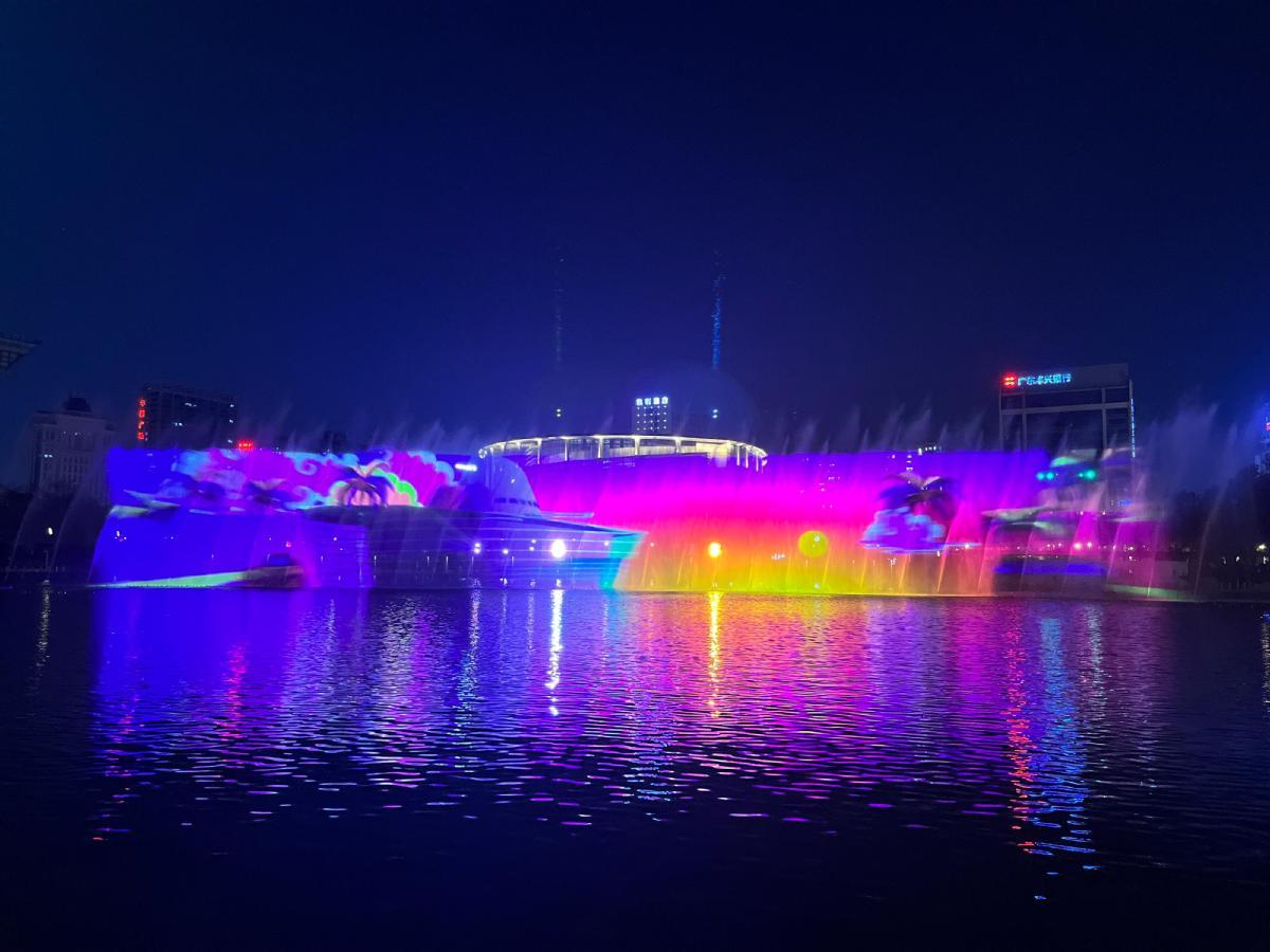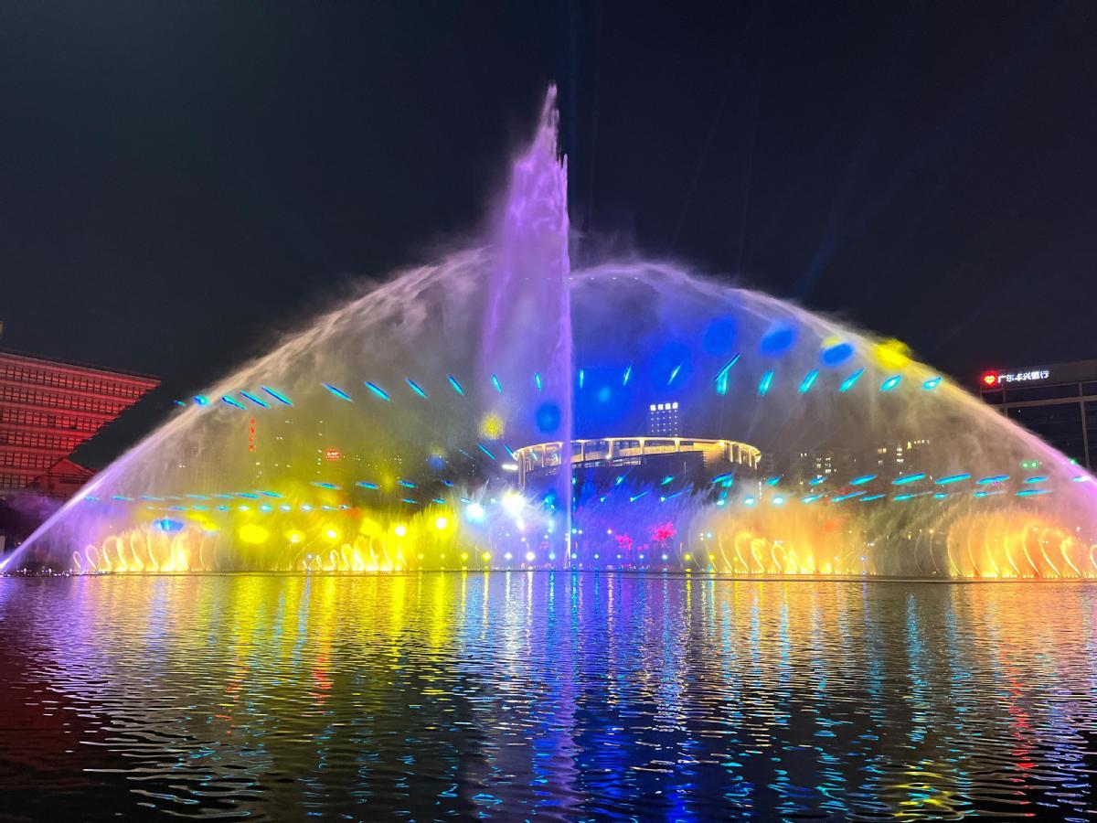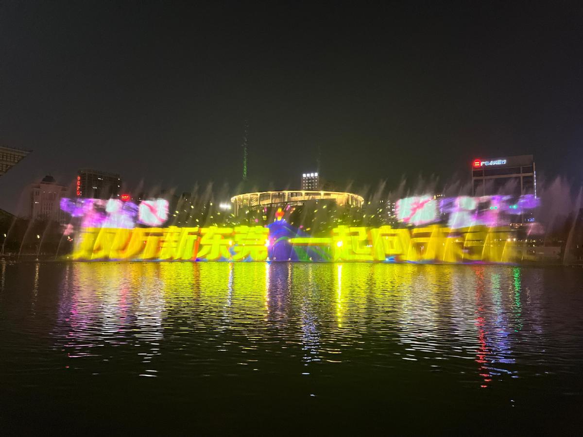 夜幕之中,雾森弥漫,鼓点翻腾,喷泉表演将音乐、灯光、喷泉与动画巧妙融合,演绎了一幕幕具有东莞特色的城市风貌,将为广大市民带来一场光影盛宴。记者从市城市管理综合执法局了解到,该喷泉表演播放时间为除夕20:30,年初一至初六每天20:00和21:00,为避免人员聚集,请广大市民错峰出行,有序观赏。