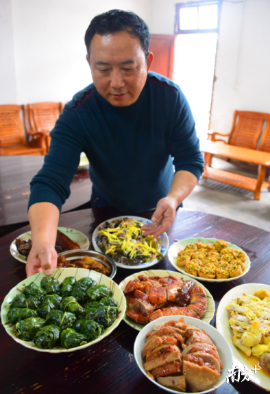“因为老人年纪大了,每次加菜我都以易咀嚼的松软菜为主,如扣肉、酿豆腐、酿菜卷,但鸡鸭鱼也必不可少。”他解释说。